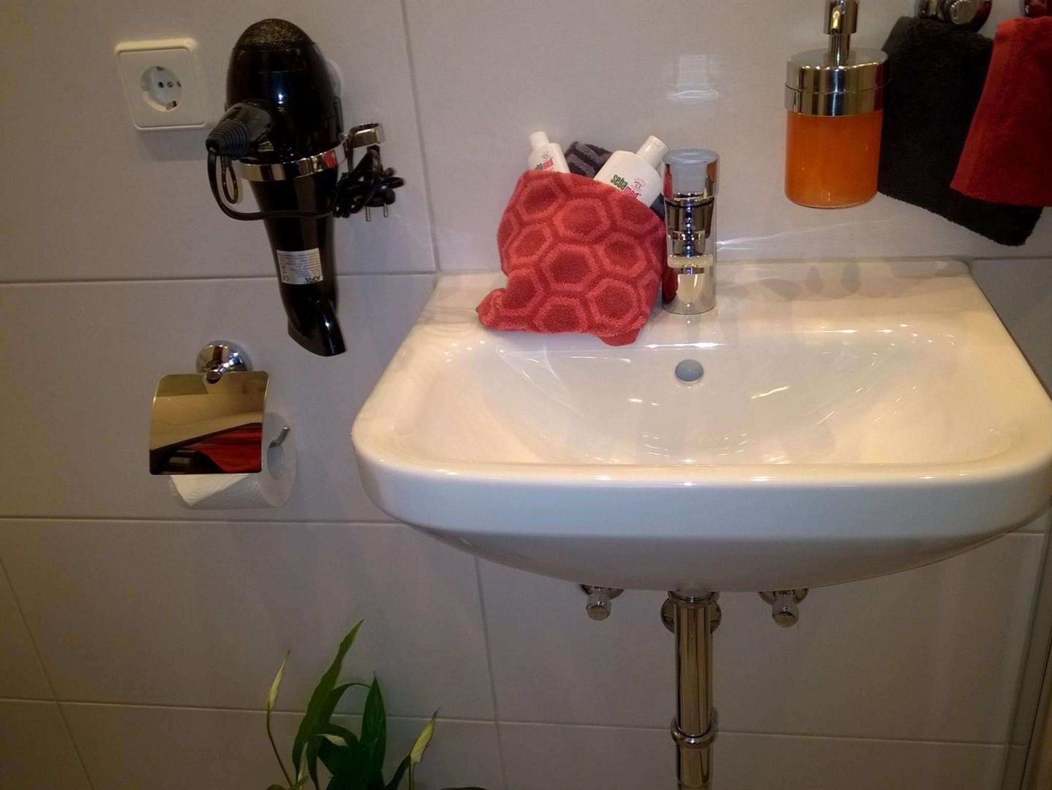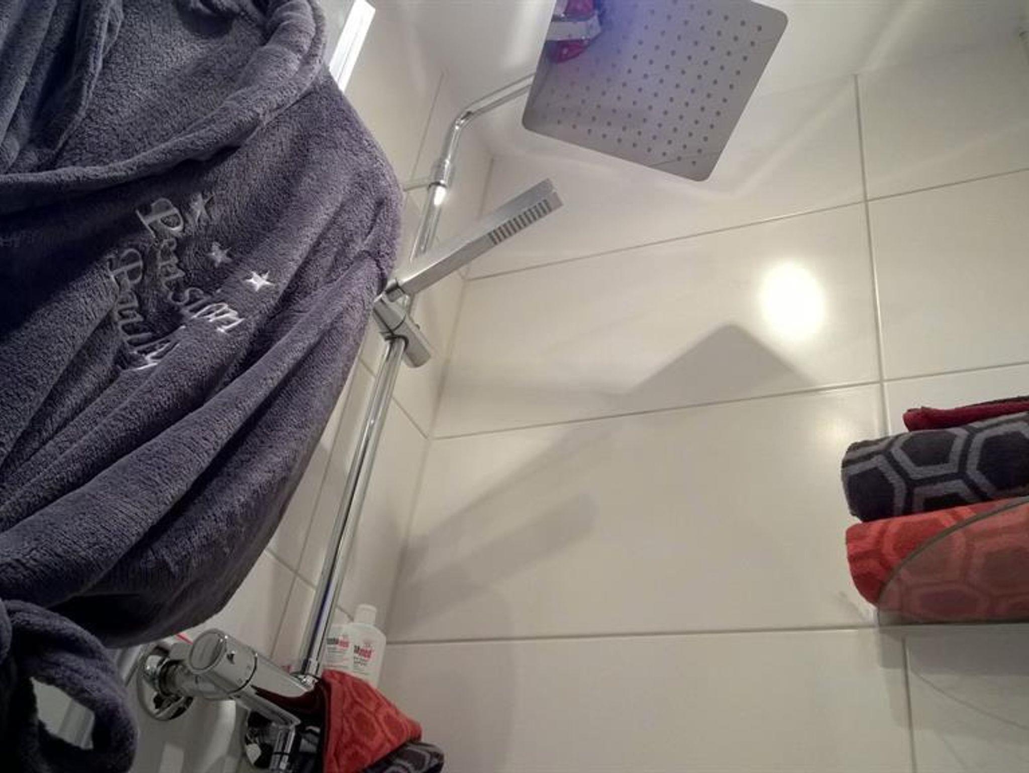 • In unserem großen separaten Bad nebenan erwartet Sie eine neue Dusche mit separater Kopf- und Seitenbrause mit Thermostat, Vergrößerungsspiegel, gewärmte Handtüchern am Designheizkörper, Stylingfön und kuscheligen Leihbademäntel.