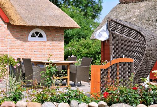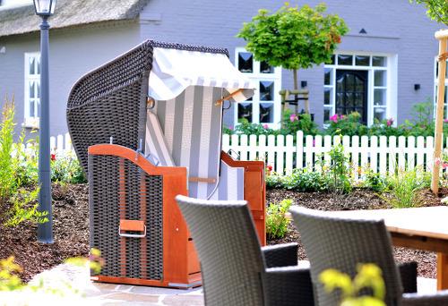 Eine separate [nbsp]Terrasse mit Strandkorb und Gartenmöbeln sowie ein eigener Gartenl bieten Ruhe und Entspannung.