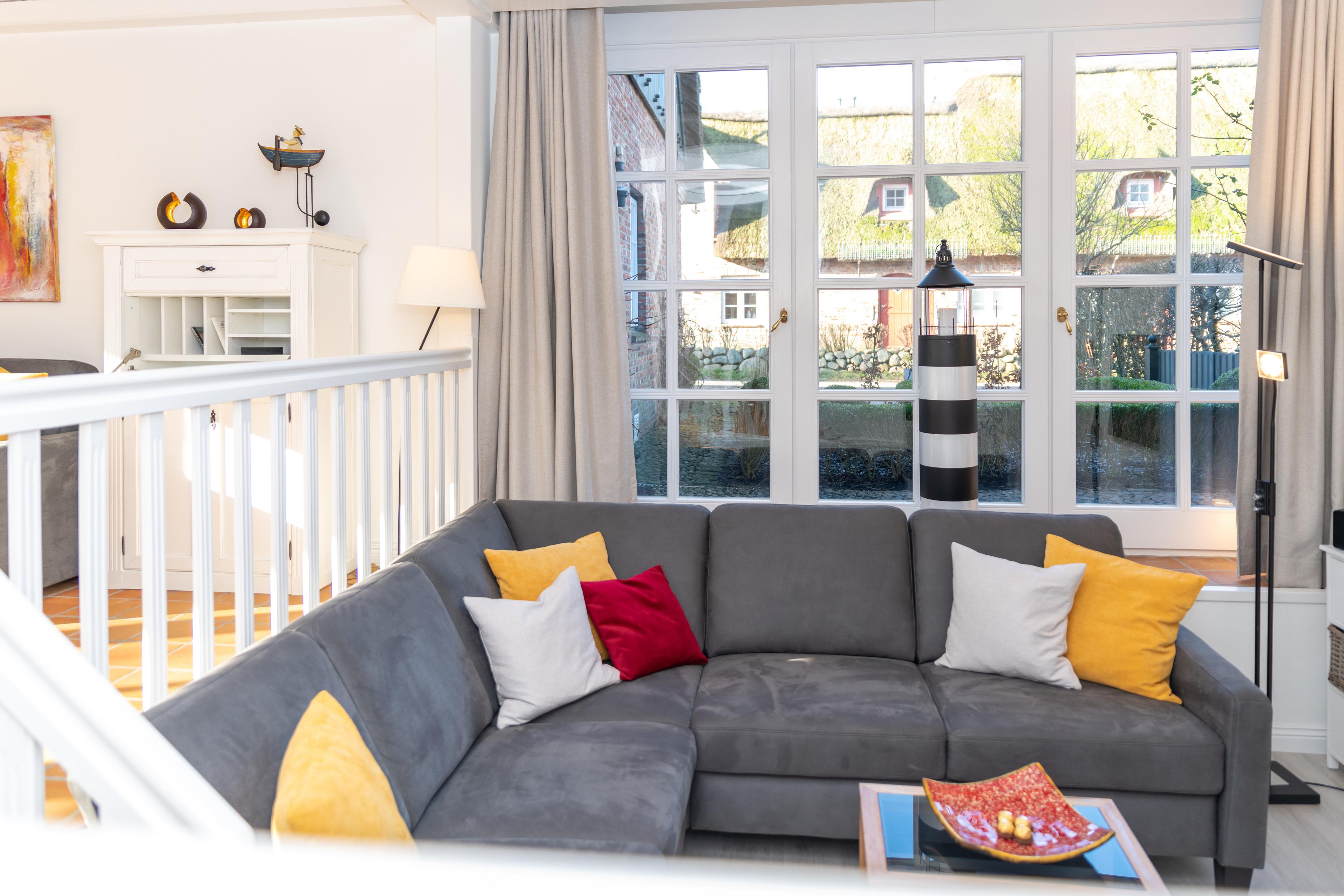 Die gemütliche Ferienwohnung befindet sich in einem aus dem Jahre 1858 stammenden Resthof im Dorfkern von Borgsum, einem Ort mit vielen Reetdachhäusern und der Borgsumer Mühle. Die Nähe zum Strand und den Marschwiesen, die zu ausgedehnten Fahrradtouren und Spaziergängen einladen, macht diesen Urlaubsort so attraktiv. In nur wenigen Gehminuten erreicht man einen Bäcker, einen Fahrradverleih, ein Café / Restaurant und für unsere kleinen Gäste einen Spielplatz. Weitere Restaurants, Einkaufsmöglichkeiten und attraktive Freizeitangebote bietet das 2 km entfernte Nachbardorf Nieblum.