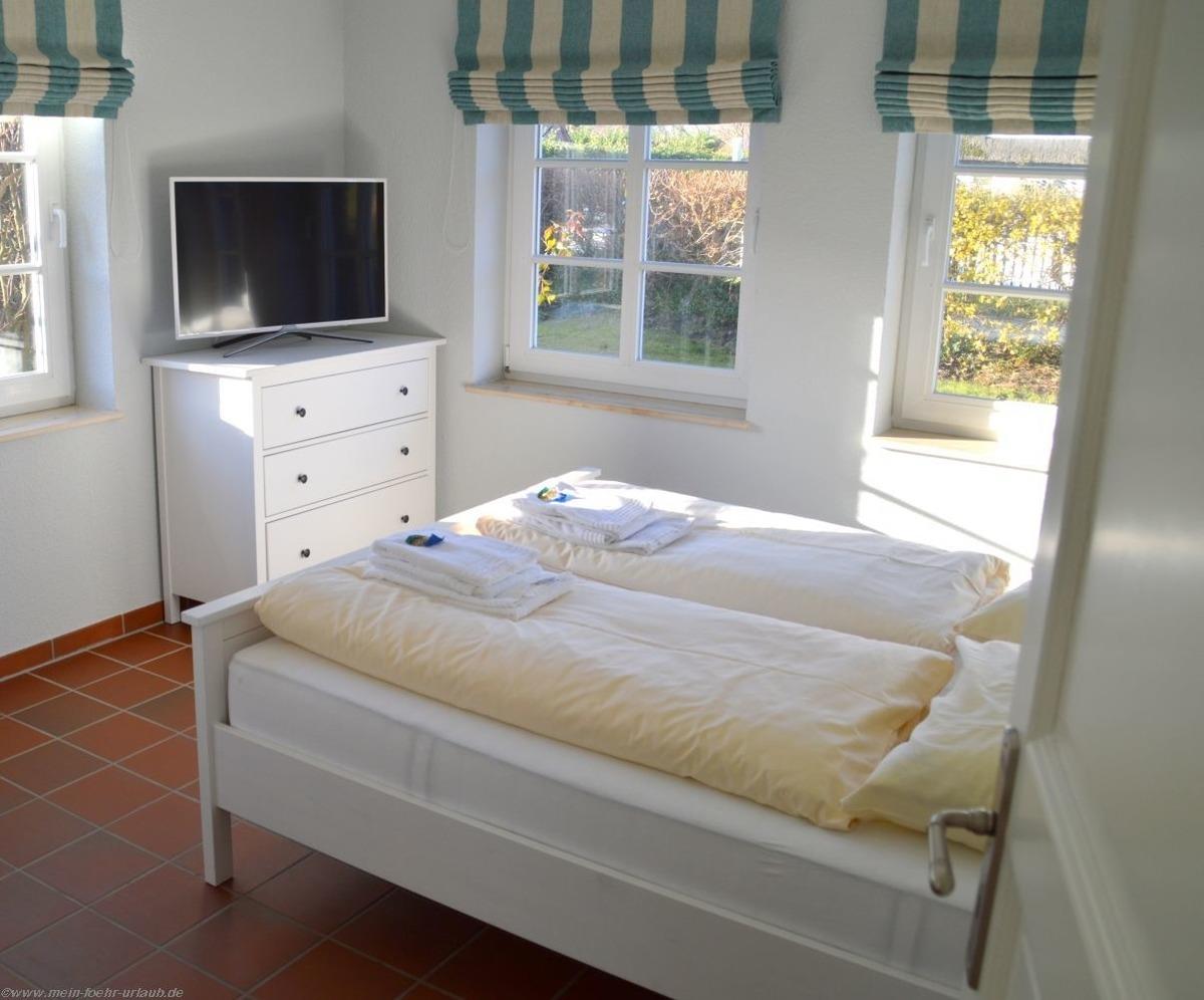 Ideal für Urlaub mit den Großeltern, ein Schlafzimmer mit Doppelbett und angrenzendem Duschbad befindet sich im Erdgeschoss.