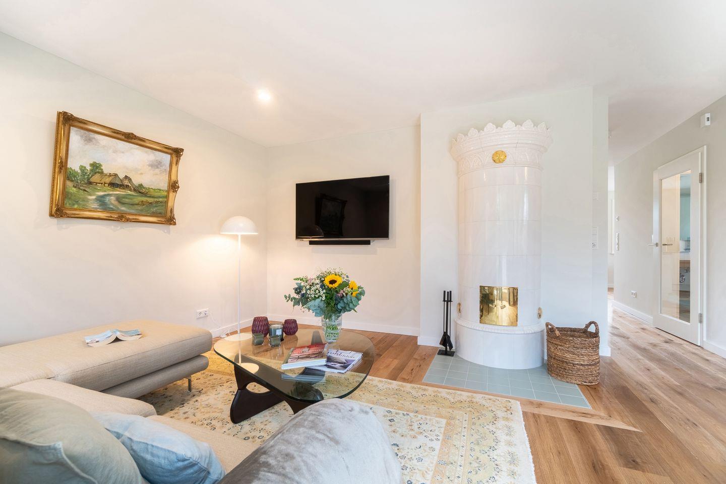 Der vordere Hausteil "Rosa Rugosa", benannt nach den inseltypischen Kartoffelrosen im Garten, erwartet Sie als Ort der Entschleunigung. Die Atmosphäre eines großzügigen Hauses mit viel Kunst, individuellen Wohnelementen und neuester moderner Technik wird Sie bezaubern. Es wurde mit nachhaltigen Materialien gearbeitet. Geheizt wird mit einer Luftwärmepumpe. Umgeben von einem ansprechend gestalteten Garten auf großem Grundstück mit inseltypischem Friesenwall, bietet Rosa Rugosa beste Voraussetzungen für Entspannung, Freude und Erholung.