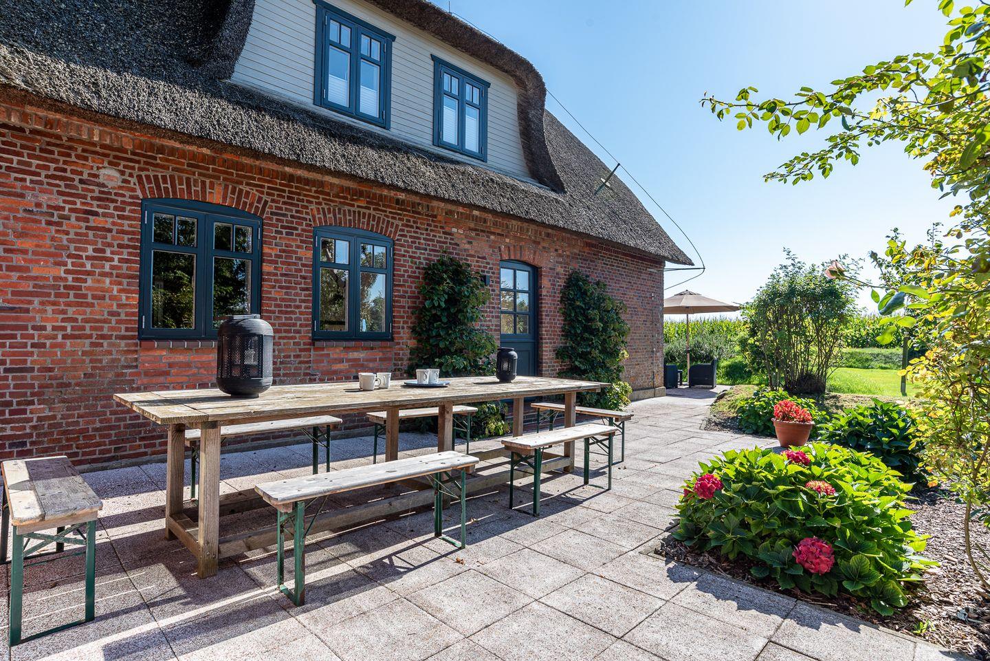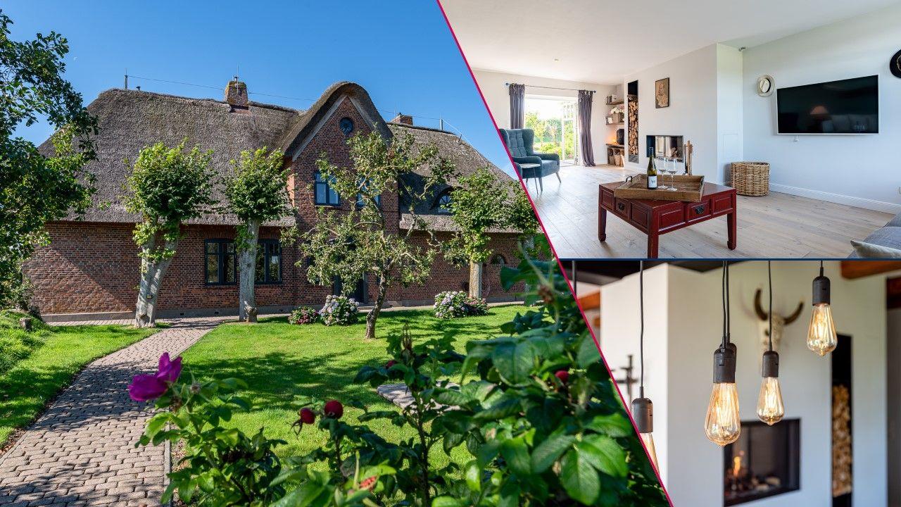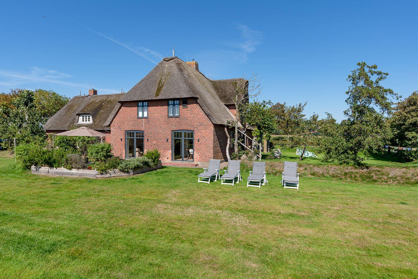 Erleben Sie Erholung pur im reetgedeckten Haus Seeadler mit Sauna, Kamin und zwei Terrassen in Borgsum.