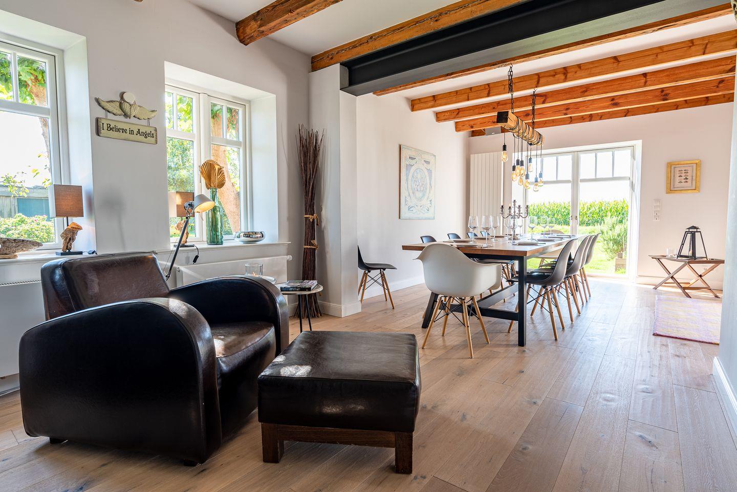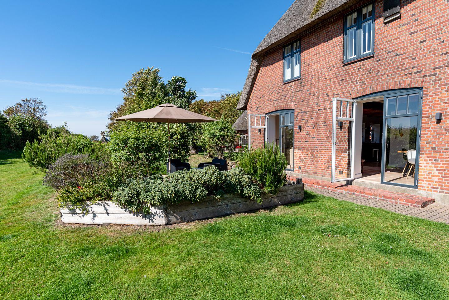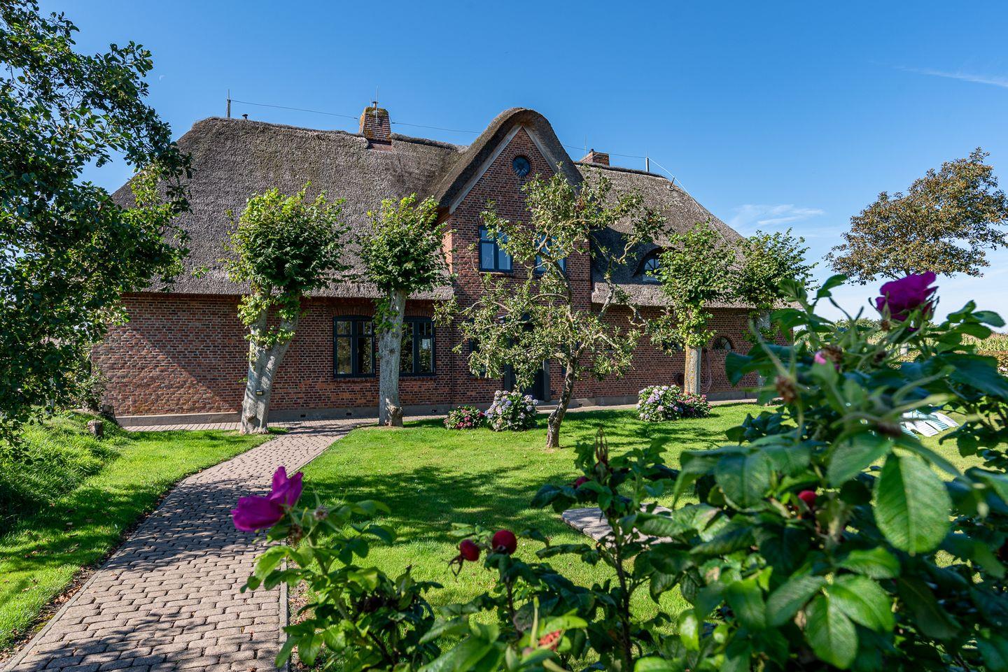 Erleben Sie Erholung pur im reetgedeckten Haus Seeadler mit Sauna, Kamin und zwei Terrassen in Borgsum.