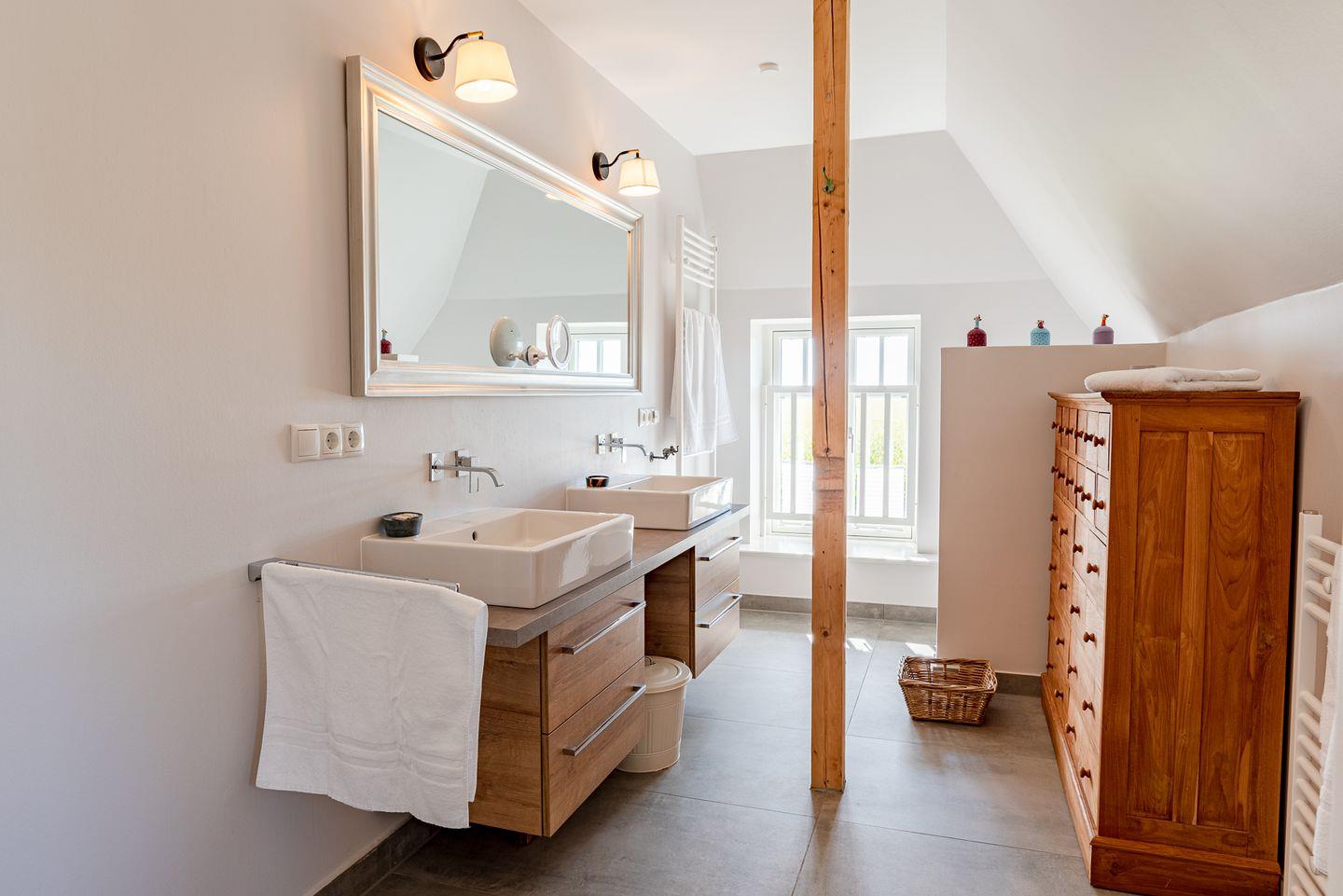 Der reetgedeckte Ferienhausteil Seeadler verfügt über 4 Schlafzimmer, 4 Bäder und 1 Gäste-WC und bietet somit komfortabel Platz für bis zu 8 Personen zuzüglich einer Kleinkinderaufbettung. Auch ein Hund ist hier herzlich willkommen.