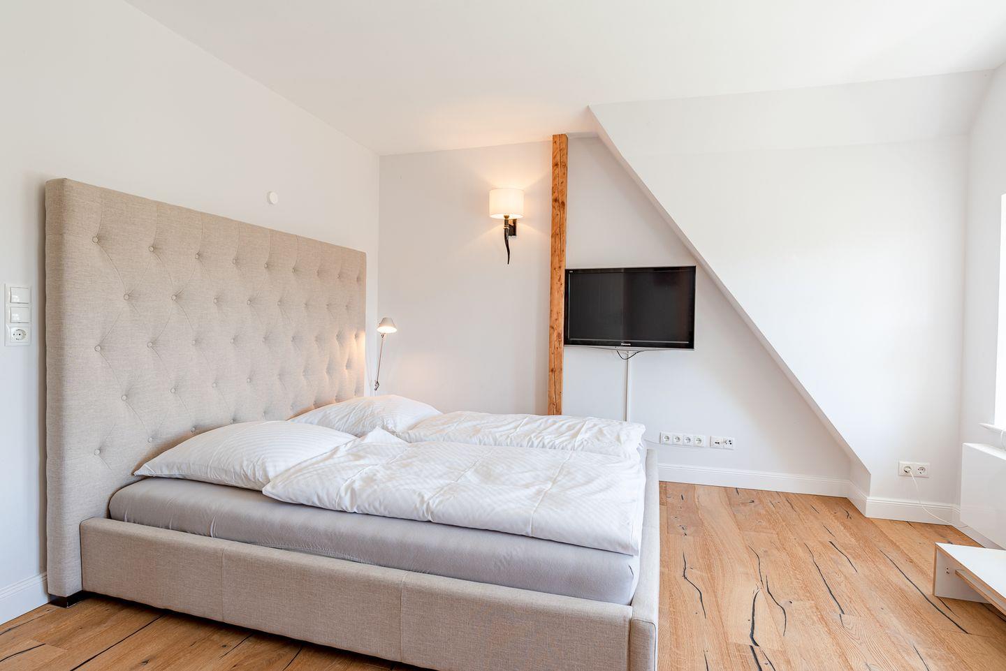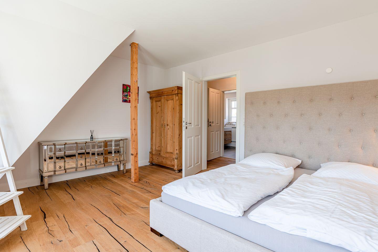Im Obergeschoss sind die vier Schlafzimmer und die vier Duschbäder gelegen. Alle Schlafzimmer sind mit jeweils einem Doppelbett ausgestattet. Zwei der Bäder liegen en Suite.