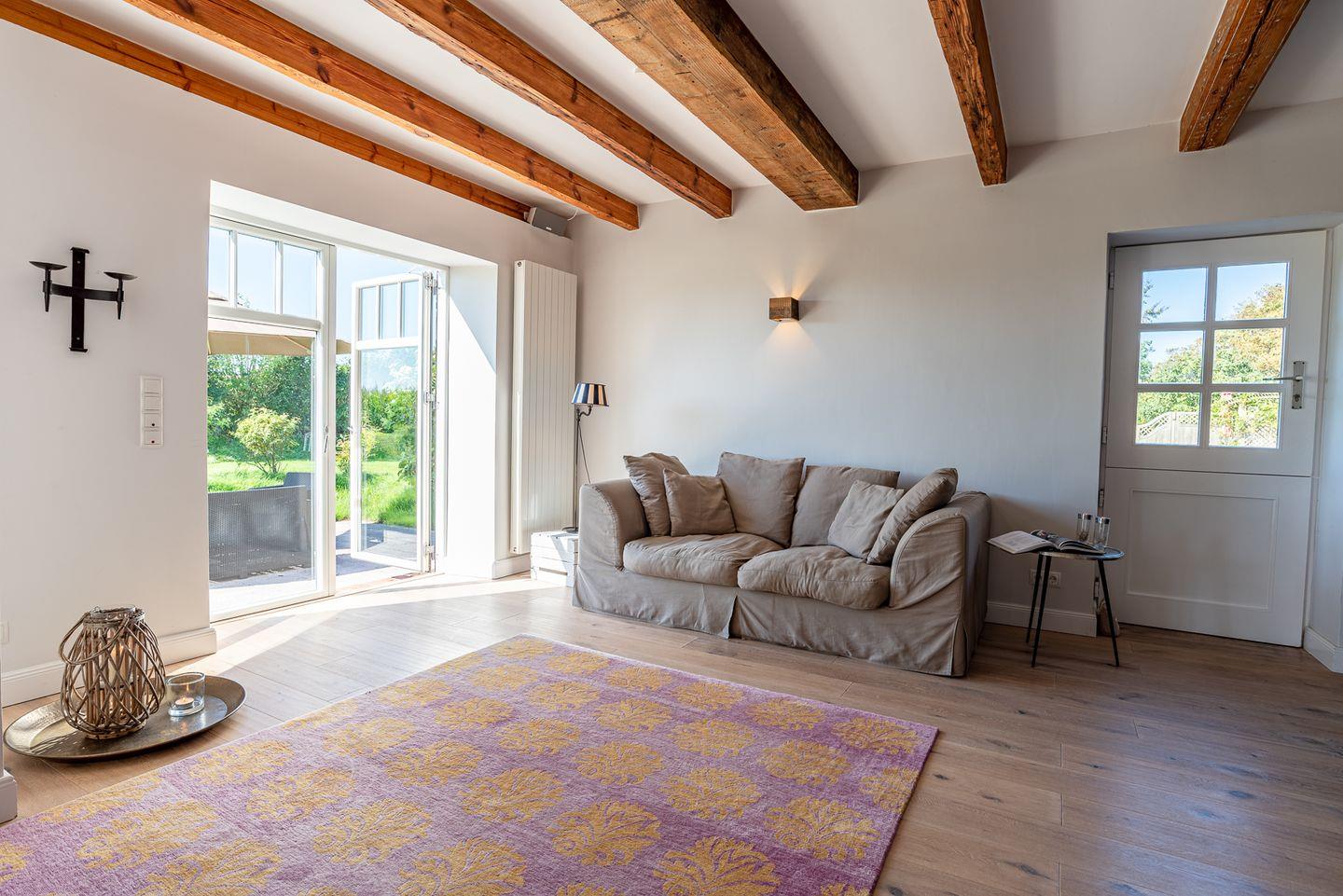 Exklusiver Ferienhausteil unter Reet mit eigener Sauna, Kamin und Gaskamin, sowie zwei eigenen Terrassen im sehr großzügigen, gemeinschaftlich genutzten Garten.