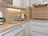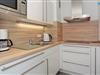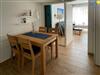 Die moderne Küche ist u.a. mit einem 4-Platten-Ceranherd, einem Kühlschrank mit Gefrierfach, einer Mikrowelle und einer Spülmaschine ausgestattet sowie mit diversen Kleingeräten (Kaffeemaschine, Wasserkocher, Toaster, Eierkocher). So können Sie sich in Ihrem Urlaub auf Borkum bequem selbst verpflegen. Ein großer Holzesstisch lädt zu gemeinsamen Mahlzeiten ein.