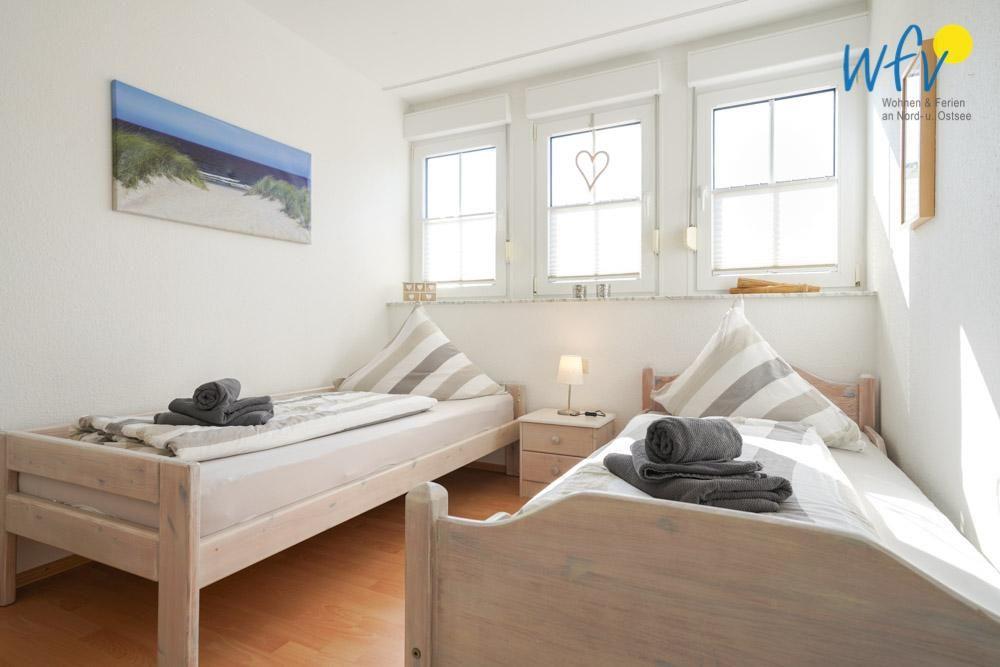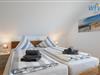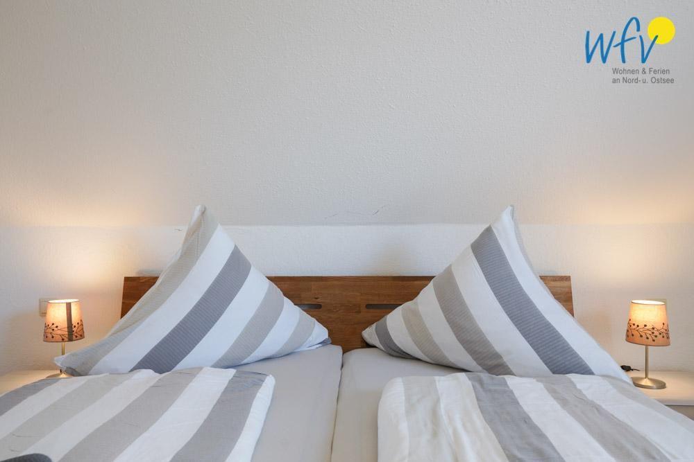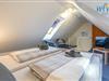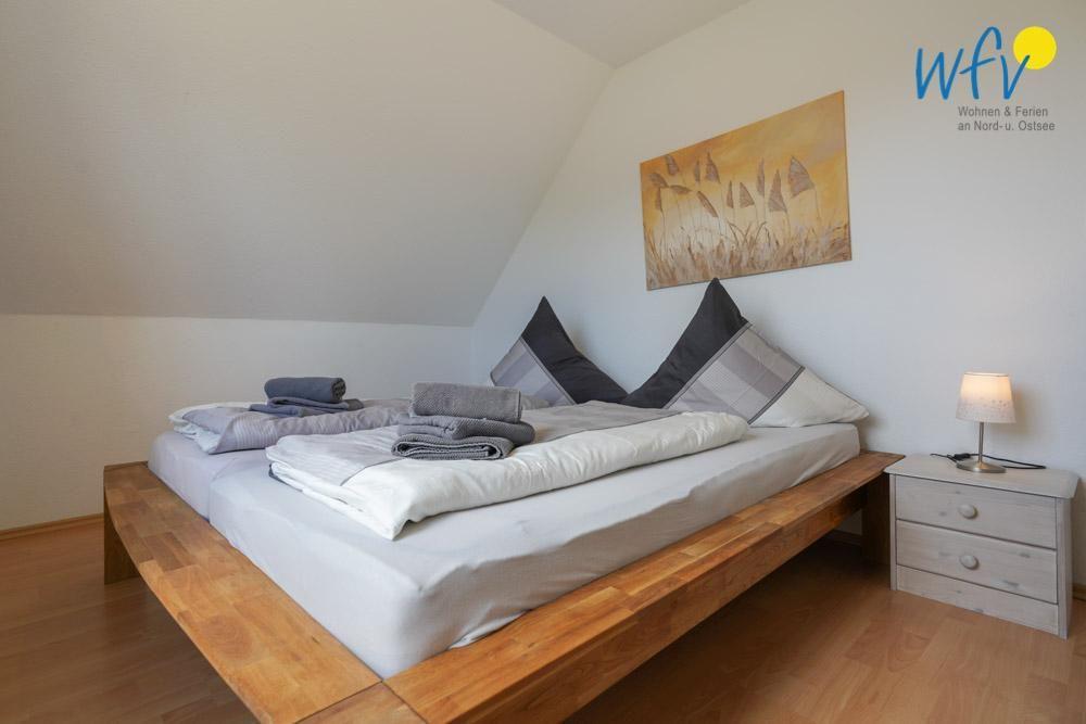 Vier separate Schlafzimmer bieten im "Ferienhaus Seepferdchen" auf Borkum angenehme Rückzugsmöglichkeiten. Das Dachgeschoss verfügt über zwei Schlafzimmer mit Doppelbett, einem Schlafzimmer mit zwei Einzelbetten und ein Badezimmer mit Dusche und WC. Im 25 m² großen Spitzboden befindet sich ein weiteres Schlafzimmer mit Doppelbett.