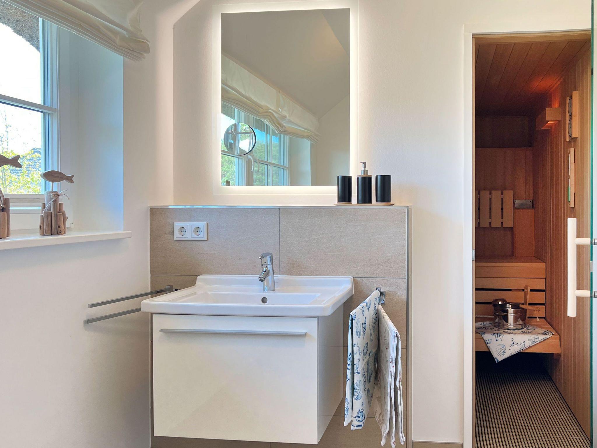 • Badezimmer 2: Bodentiefe Dusche, WC, Sauna, Fußboden- und Handtuchheizung