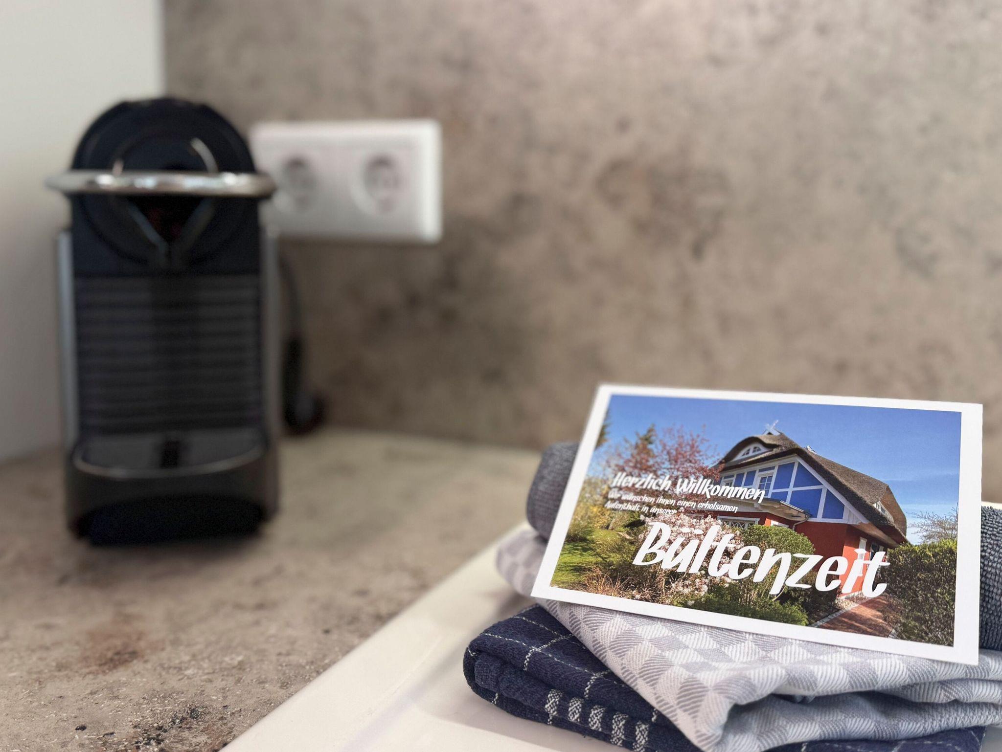 • Offene, voll ausgestattete Küche mit Geschirrspüler, Backofen, Filterkaffeemaschine, Nespresso-Kapselmaschine, Toaster und Wasserkocher