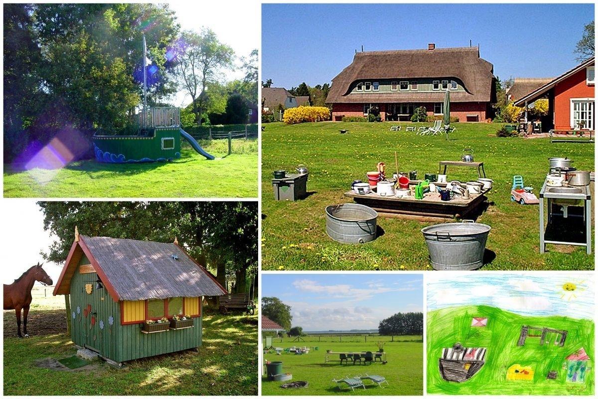 Im großzügig angelegten Garten finden Sie zu der Ferienwohnung ein ruhiges Plätzchen zum Entspannen. Kinder haben hier jede Menge Platz zum phantasievollen Spielen in Sandkiste, Kinderhaus, Volleyballnetz o.ä.. Am Grillplatz kann der Abend gemütlich ausklingen. Zur Ferienwohnung gehört ein PKW-Stellplatz sowie Fahrradständer.