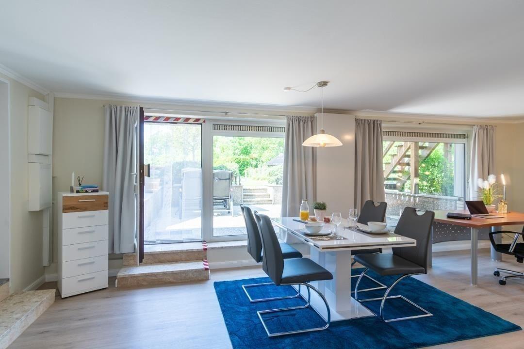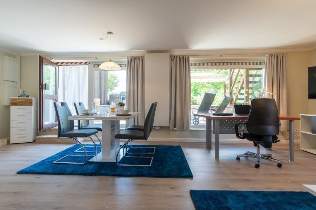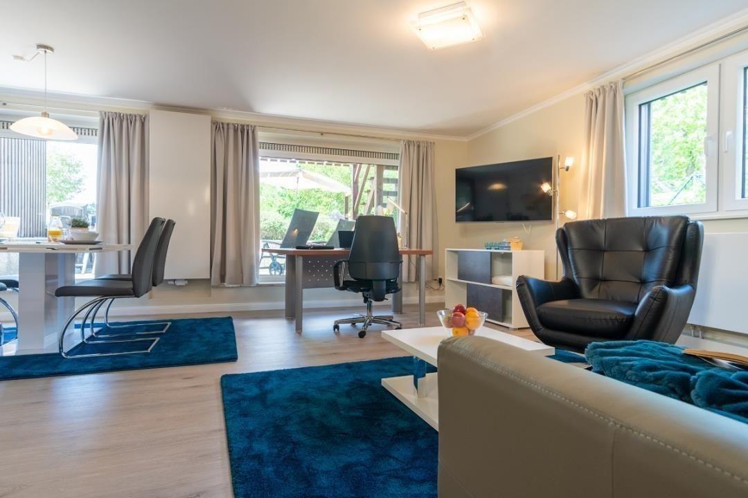 Moderne Ferienwohnung mit großer Terrasse und Seeblick in Bosau am Plöner See, ideal für erholsame Tage zu zweit.