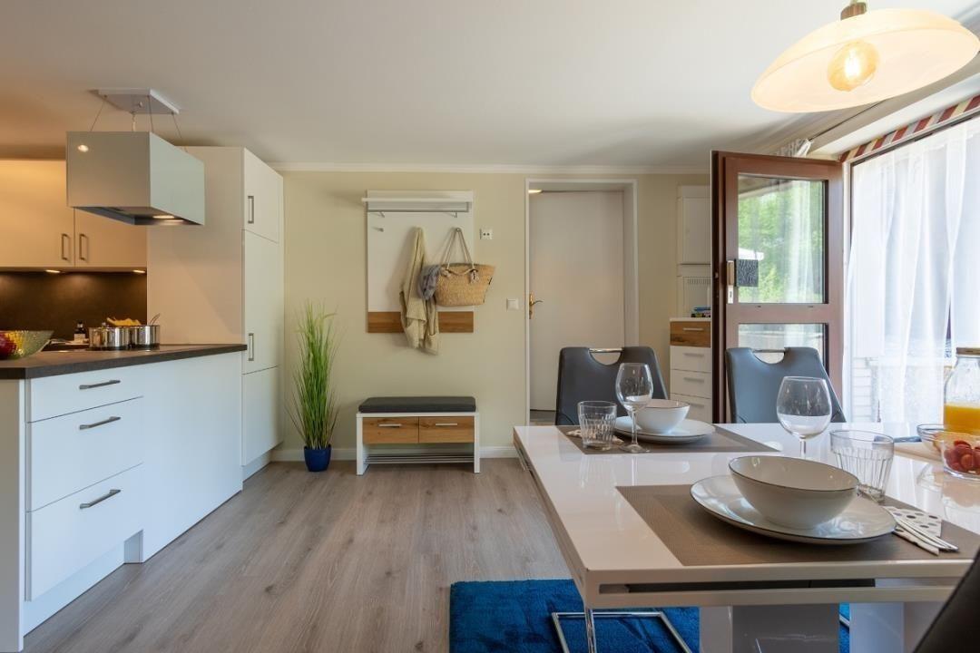 Willkommen im Haus "Schwanensee" am großen Plöner See. Die frisch renovierte Ferienwohnung befindet sich im Erdgeschoss des Hauses und wurde liebevoll modernisiert. Im lichtdurchfluteten Wohnbereich erwartet Sie ein gemütliches Doppelbett, ein Flatscreen-TV, sowie eine kleine Essecke direkt am Terrassenfenster. Direkt daneben befindet sich der Zugang zur großen Terrasse mit direktem Blick zum Bischofsee. Die offene Küchenzeile ist komplett eingerichtet. Besteck, Essgeschirr, Töpfe und Pfannen sind ausreichend vorhanden. Außerdem steht Ihnen neben einer Kaffeemaschine, einem Wasserkocher und einem Toaster auch noch eine Geschirrspüler zur Verfügung. Das angrenzende geräumige Duschbad verfügt über ein WC, ein Waschbecken mit großem Spiegel, sowie eine Dusche mit Glaskabine.