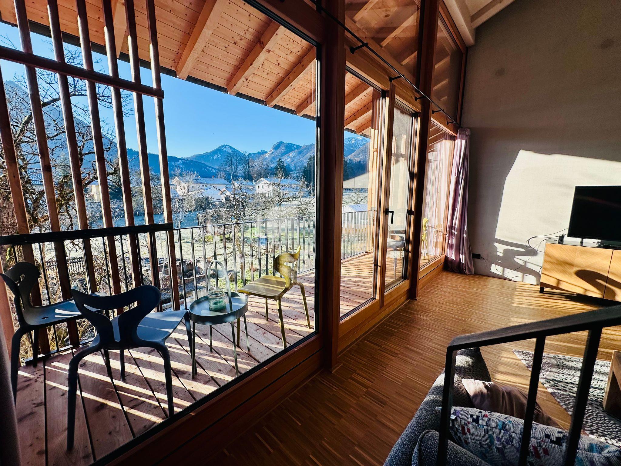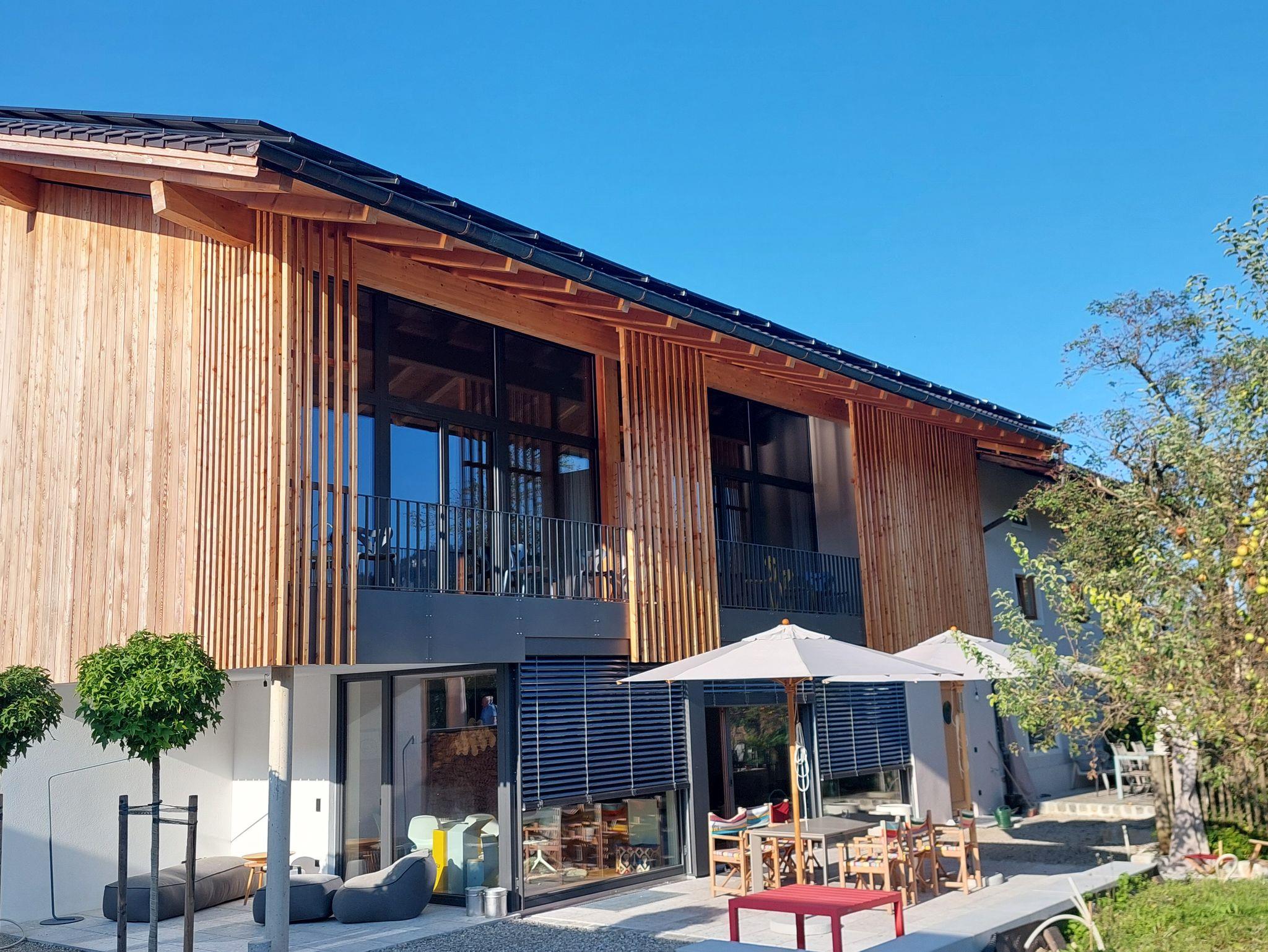 Es erwarten Sie Beton und Holz mit viel Glas im modernen Ambiente. Das vordere Haupthaus von 1851, erbaut nach dem „Schrofensturz“, zählt zu den älteren Bauernhäusern in Brannenburg.