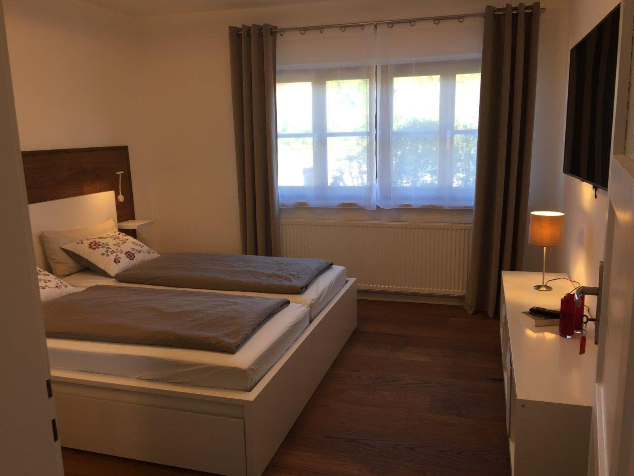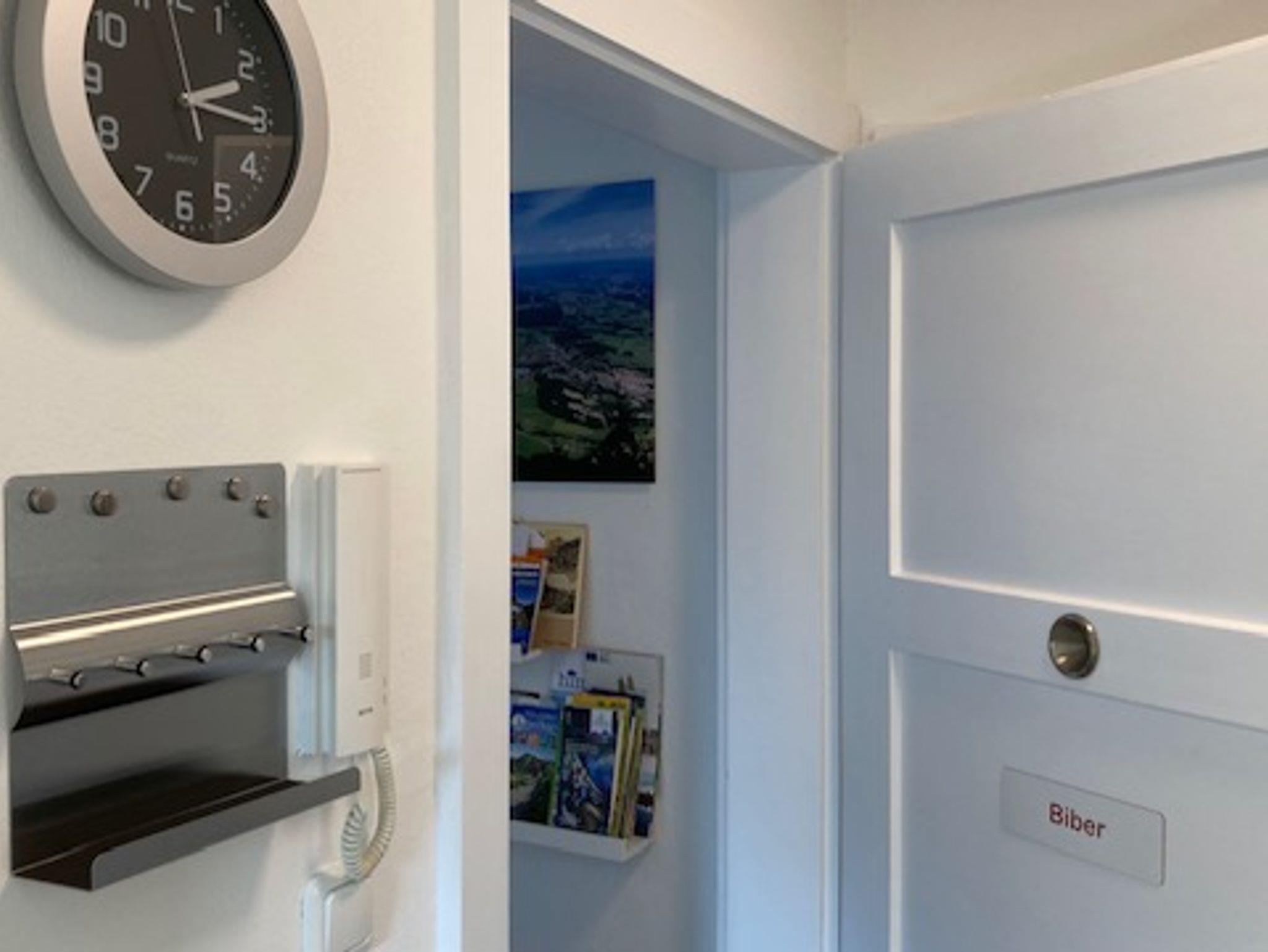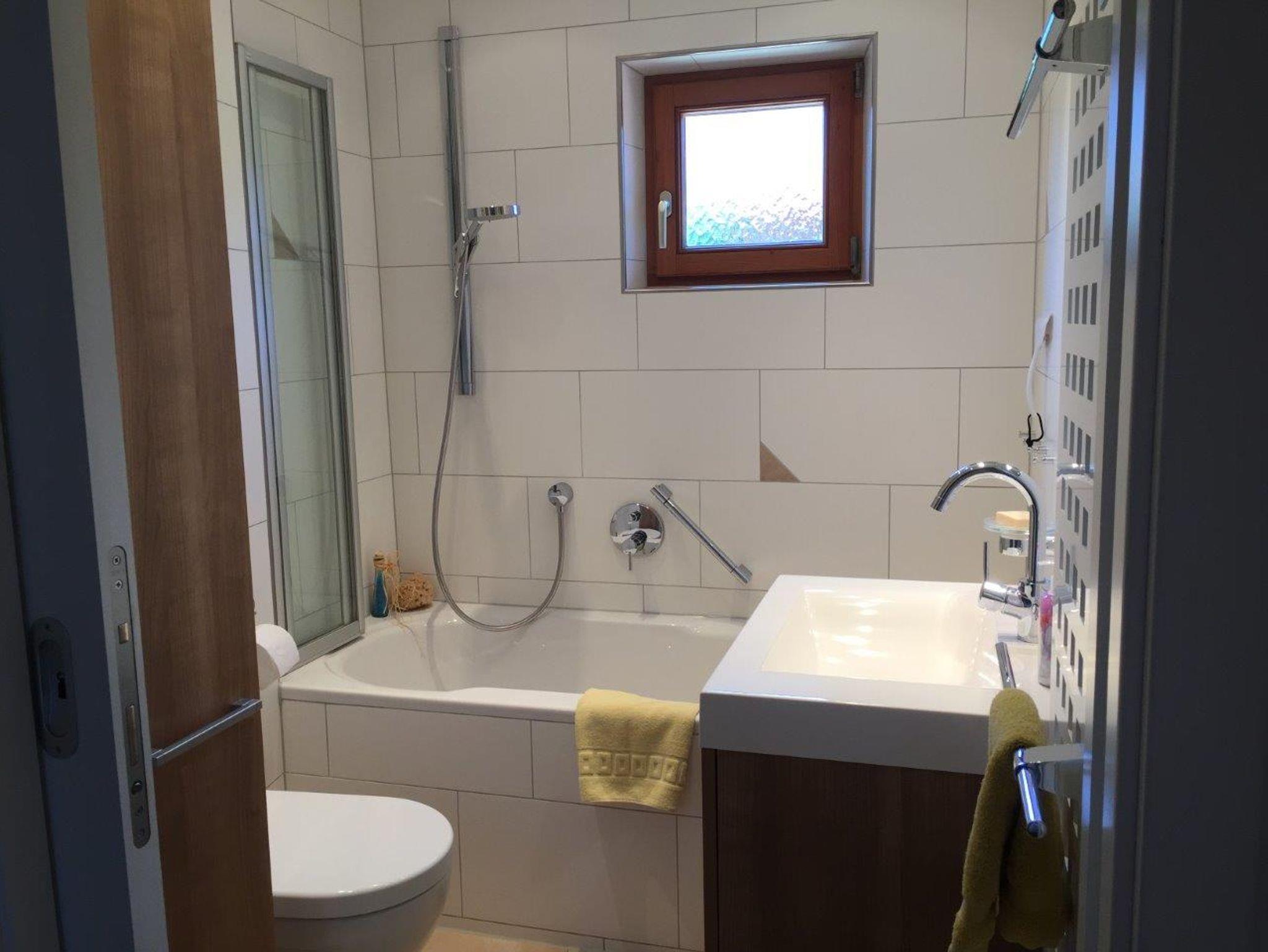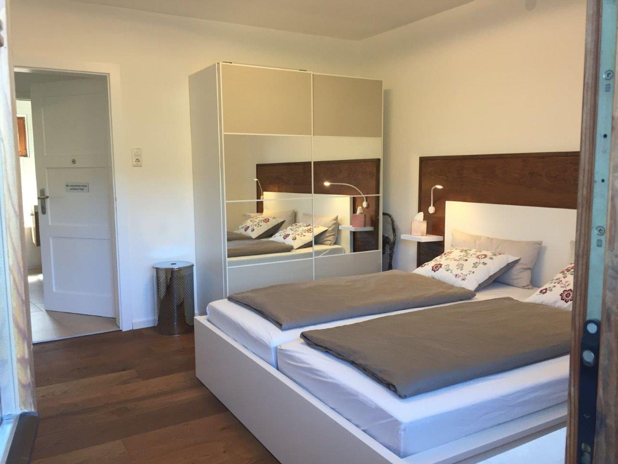 Die Wohnung liegt im EG und hat direkten Zugang zur Ostterrasse (25 m²) mit Blick auf das Naturdenkmal Biber (einer Nagelfluhgesteinsanhöhe mit Wallfahrtskirche). Die gemütliche 51 m² Wohnung besteht aus: Essküche mit maßgeschreinerter Eckbank, Einbauküche mit Geschirrspüler, Schlafzimmer mit Doppelbett 1,80x2,00m Liegefläche und neuem Flachbildfernseher Wohnzimmer mit hochwertiger Klappschlafcouch (Liegefläche 1,80m x 2,00m), Gaskachelofen und neuem Flachbildfernseher, kleines Bad mit Dusch-Badewanne, Fön und ausreichend Stauraum, Flur mit Garderobe. Besonderes Highlight ist der neue rustikal strukturierte Eichenholzparkett, der in den Wohnräumen und Essküche verlegt wurde.