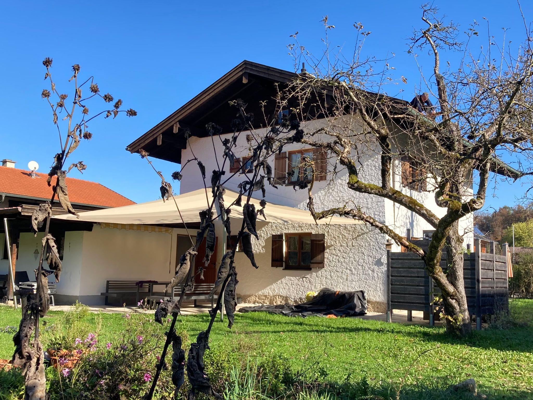 Bettinas Haus liegt im ruhigen Ortsteil Milbing ca. 20 Gehminuten südwestlich des Ortszentrums. Das Haus verfügt über zwei identisch geschnittene 2-Zimmerwohnungen (je 51 qm) mit Essküche. Im Jahr 2020 wurden umfangreiche Sanierungs- und Renovierungsmaßnahmen durchgeführt, somit ist das Haus heute auf einem modernen Standard. WLAN 50 Mbit, Kabelanschluss und solarunterstützte Gaszentralheizung. Der ursprüngliche Charme eines 90 Jahre alten Hauses wurde herausgearbeitet und bewahrt, so z.B. der knarzende Parkettboden im OG. Die Garage mit E-Ladestation bietet die Möglichkeit, ein Fahrzeug sowie mitgenommene Fahrräder unterzustellen (Aufpreis). Der wunderschöne ca. 550 m² große Garten mit von ca. Mai - Oktober betriebener Warmwassergartendusche öffnet sich in Südwestrichtung hin zu einer traumhaften Bergkulisse, die den Wendelstein umgibt.