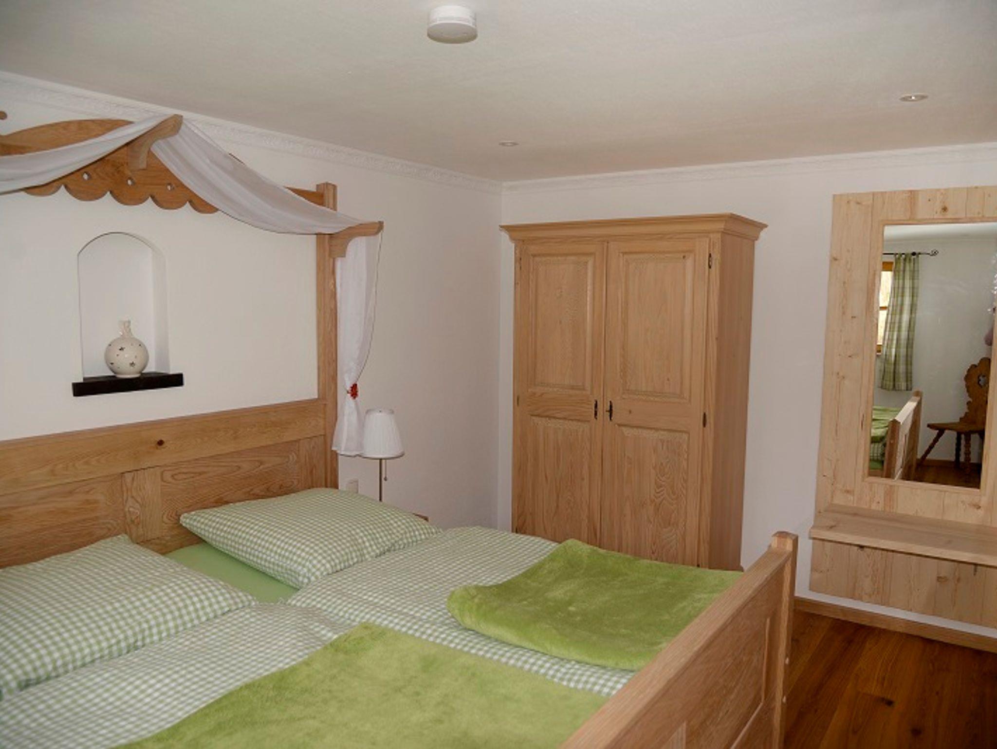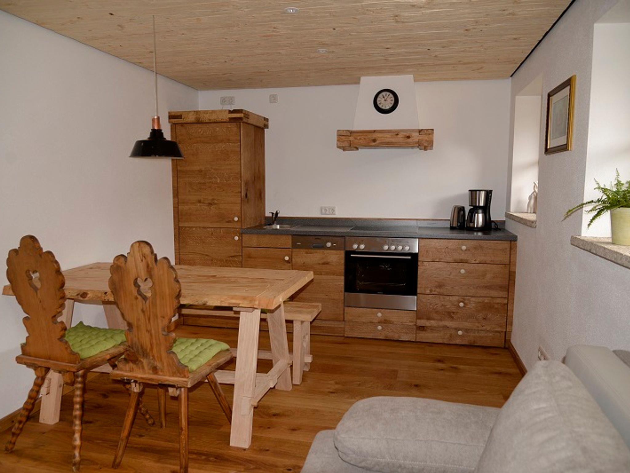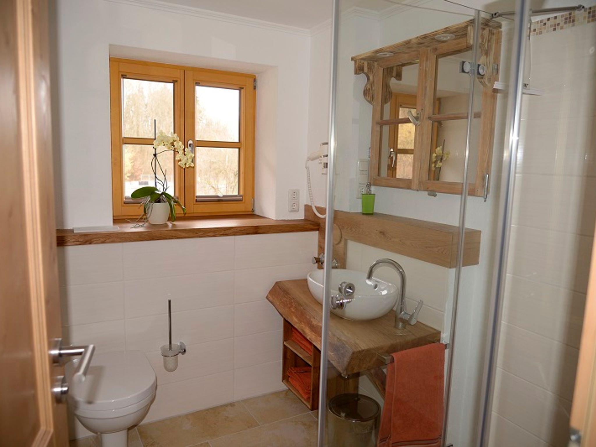 Mühlradstube... am rauschenden Bach! Unser Schmuckstück im Haus der Mühle zu Waching ist eine in handwerklicher Eigenarbeit gestaltete 2 Zimmer Ferienwohnung mit 36 qm im modernen alpenländischen Stil. Die Ferienwohnung ist hochwertig ausgestattet mit Naturholzböden/Türen und Möbeln, im separaten Schlafzimmer ist das Himmelbett, das mit Bettwäsche bezogen ist. Neben dem Kleiderschrank ist ein großer Spiegel mit Kofferablage. In allen Räumen ist eine Fußbodenheizung vorhanden. Die Küche ist vollwertig ausgestattet incl. Spülmaschine, Ceranfeld, ausreichend Geschirr, Gläser etc. Kühlschrank mit Kühlfach, der großzügige Essbereich befindet sich direkt in der Küche. Für gemütliche Stunden gibt es ein Sofa und natürlich einen Flachbild-TV mit SAT. Im Bad ist eine exklusive Sanitär-Ausstattung. Die Handtücher, Fön und Toilettenartikel sind vorhanden. Im Flur befindet sich die Garderobe. Haustiere willkommen (10€ pro Nacht)