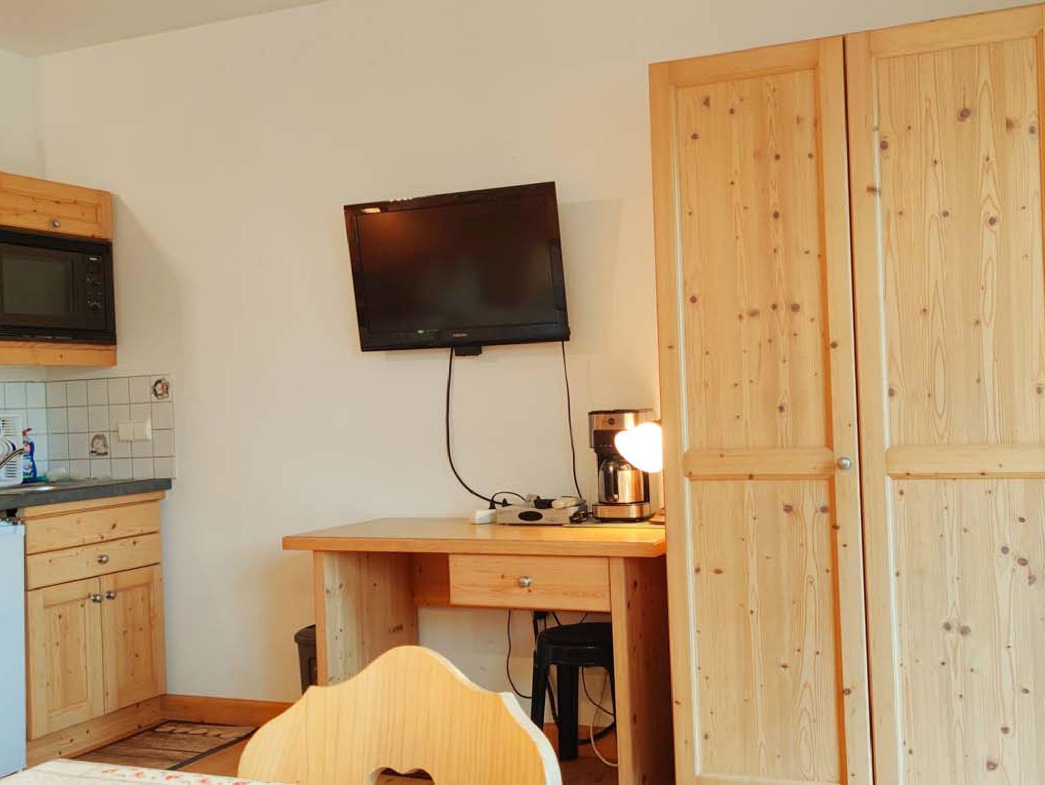 Durch ein großes Fenster und die Terrassentüre kommt viel Tageslicht ins Zimmer. Wer sich bei schönem Wetter lieber im Freien aufhält, der kann hier die eigene Terrasse nutzen. Mit Blick auf den Obstgarten, Pferdekoppel und den Gipfeln des östlichen Bergpanoramas lässt sich hierwunderbar entspannen.