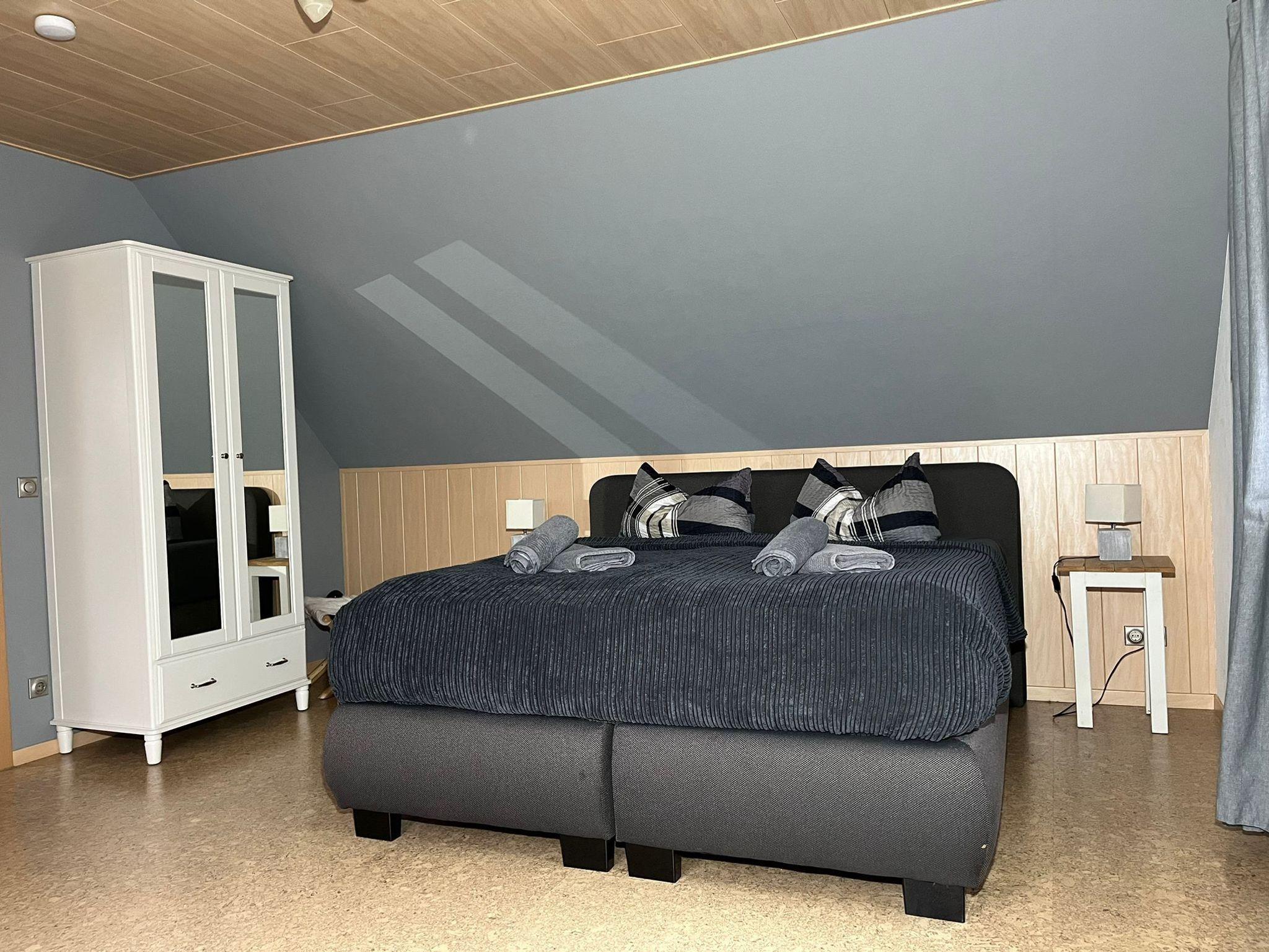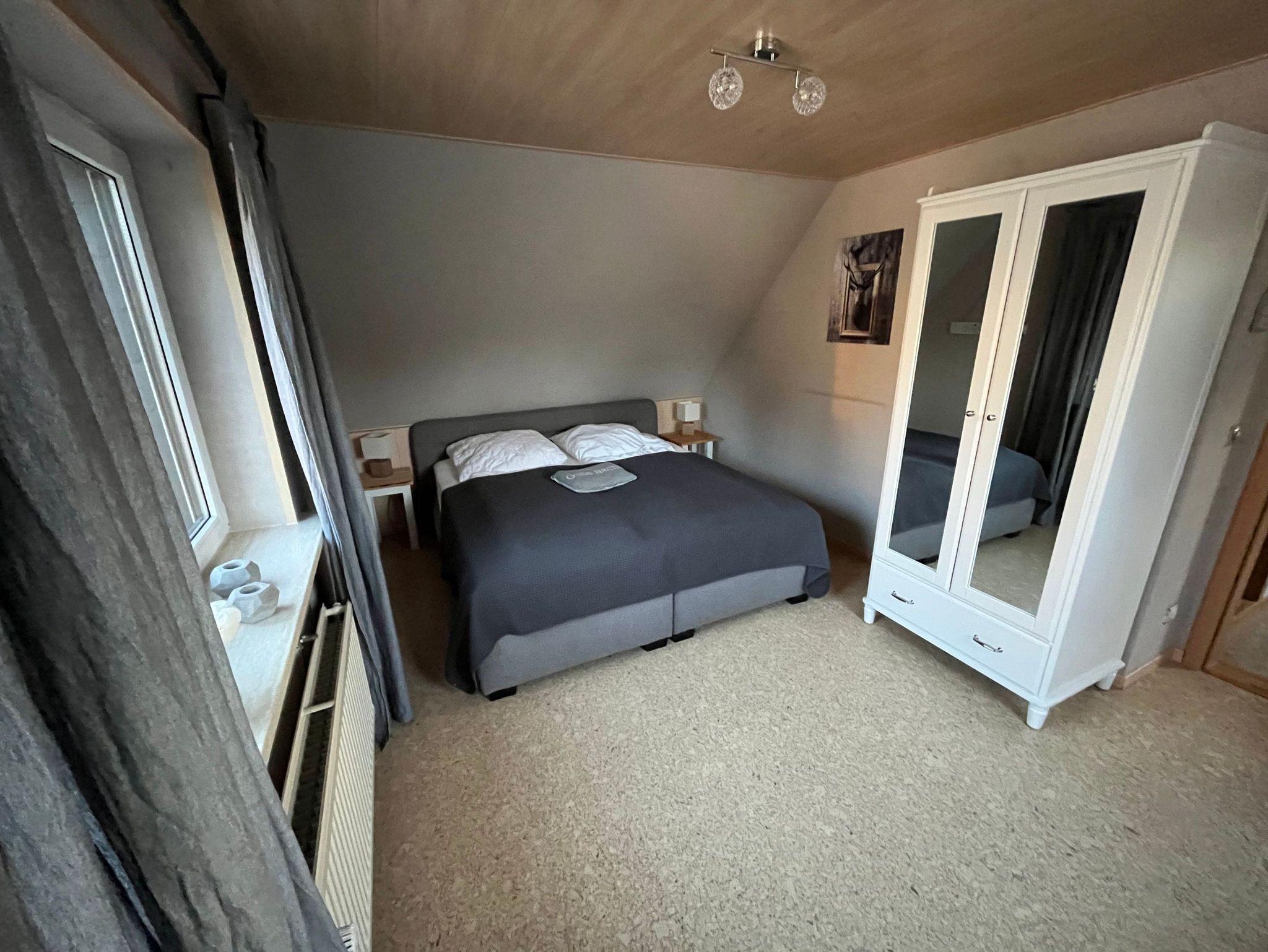 1 Schlafzimmer mit Doppelbett (180x200cm - durchgehende Matratze) und einem Schlafsofa (150x200cm) sowie Flat-TV