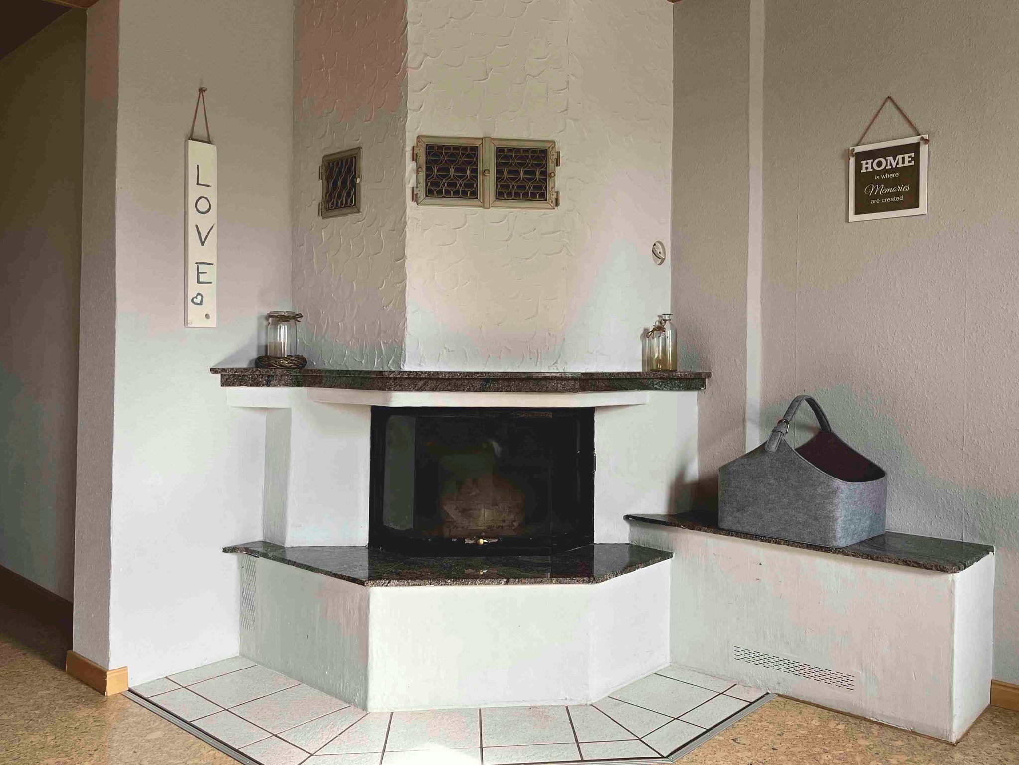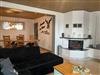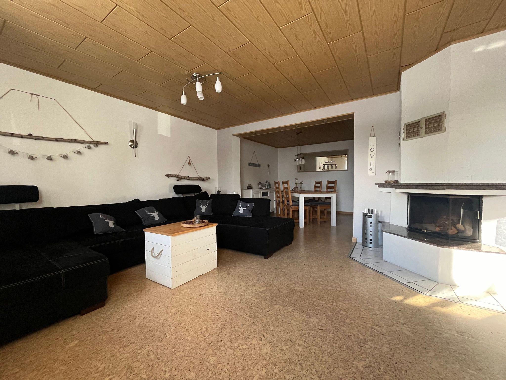 Wohnzimmer mit großer Sitzecke, TV und Kamin