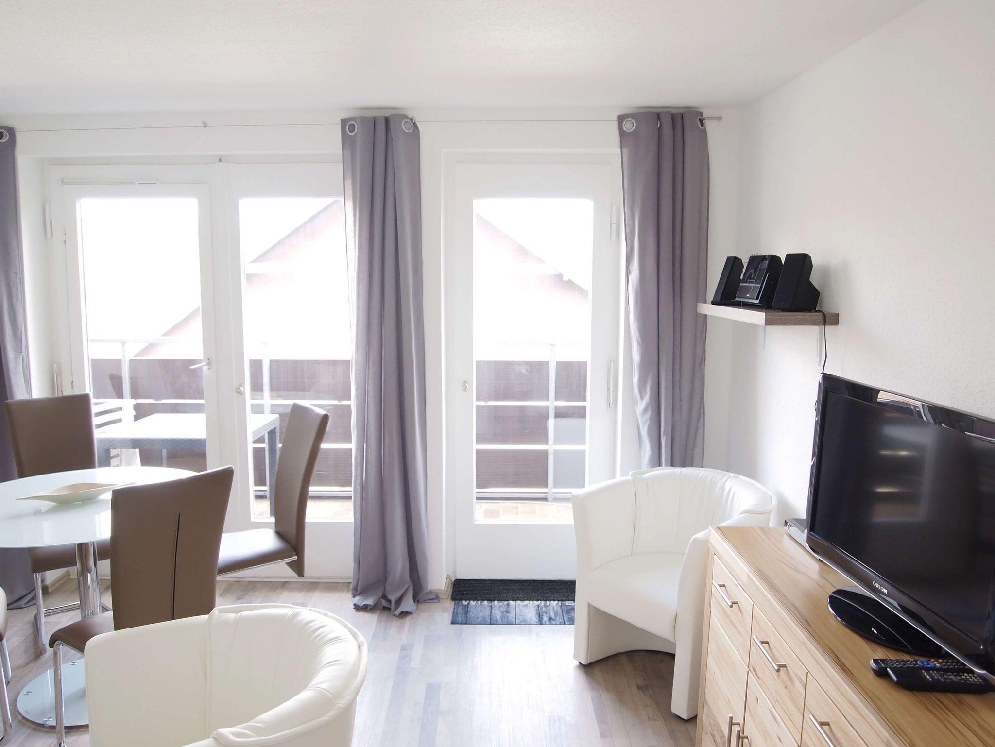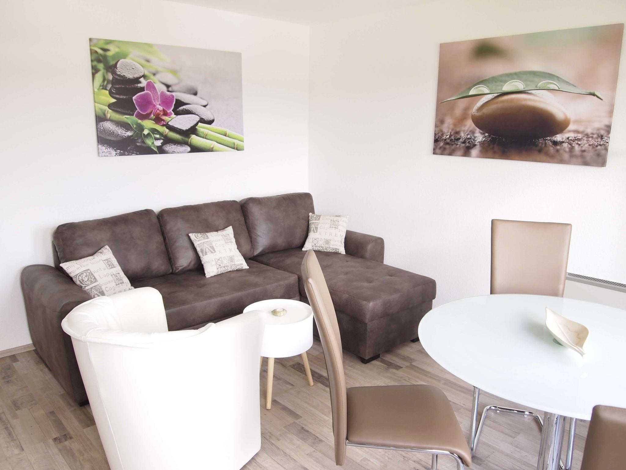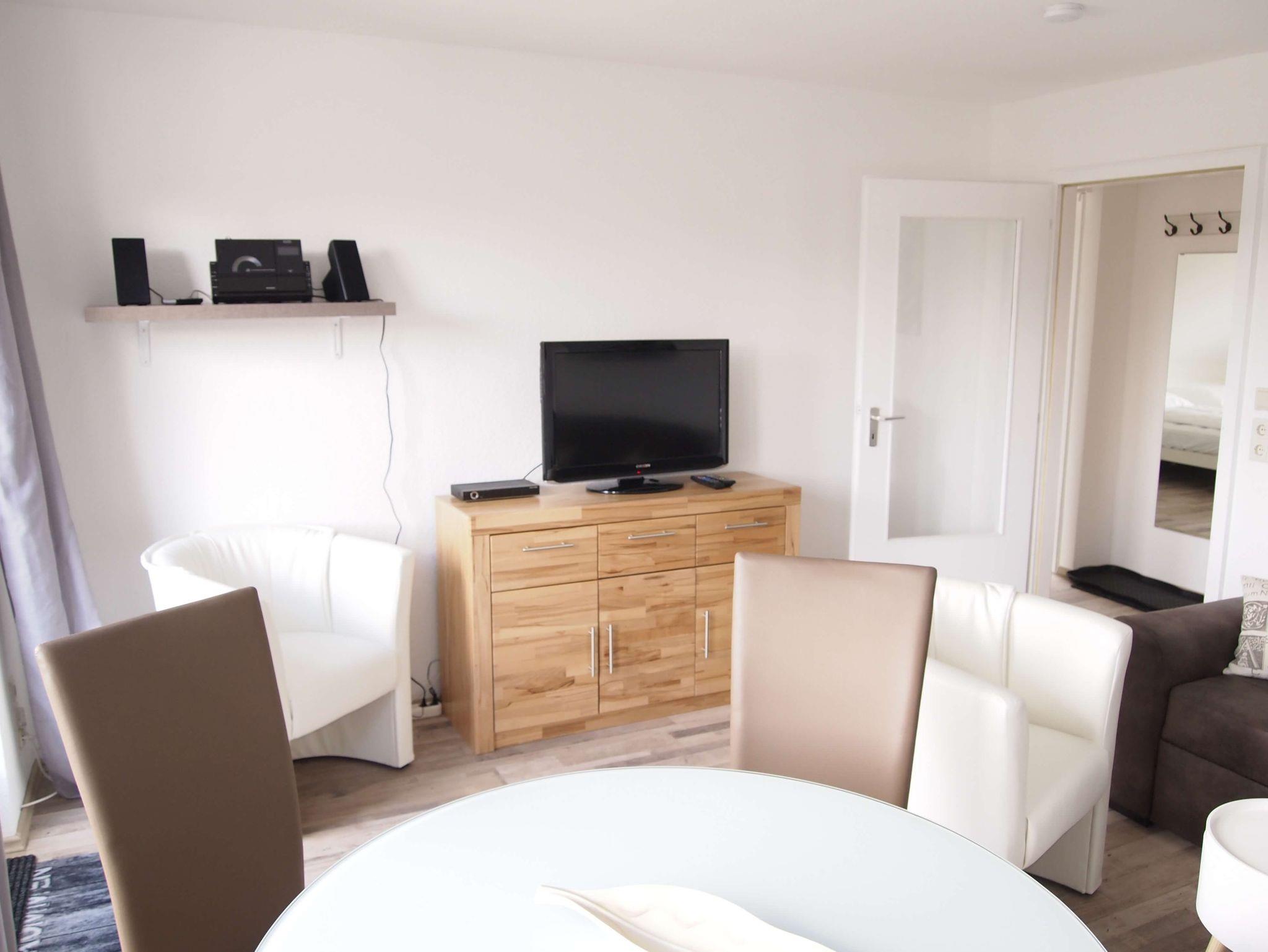 Im gemütlichen Wohnzimmer finden Sie ein Schlafsofa und eine schöne Essecke. Zur Unterhaltung stehen Fernseher und Musikanlage zur Verfügung.