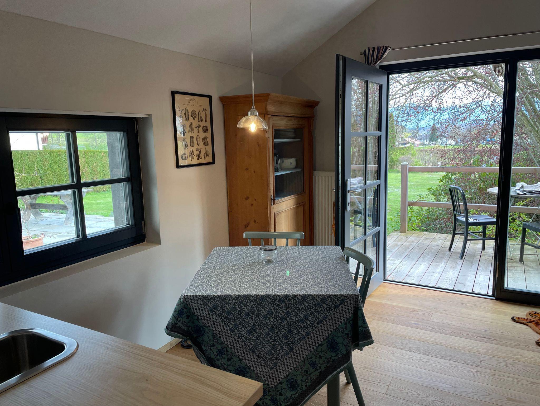 Unser bezauberndes Tinyhouse aus Massivholz liegt herrlich eingekuschelt unterm Haselstrauch im Grünen, nur einen Steinwurf entfernt vom glasklaren See und mit atemberaubendem Blick auf die Berge.