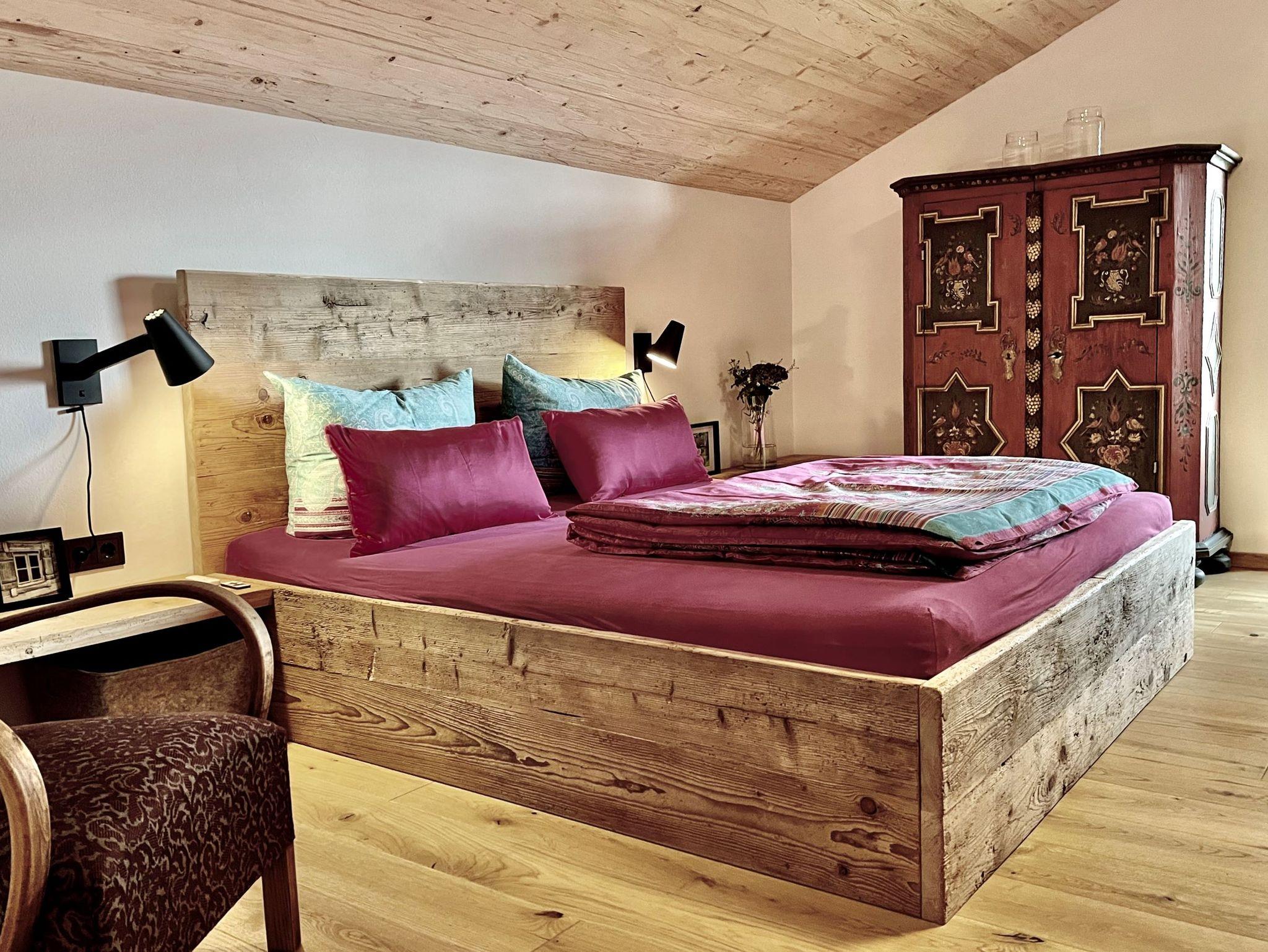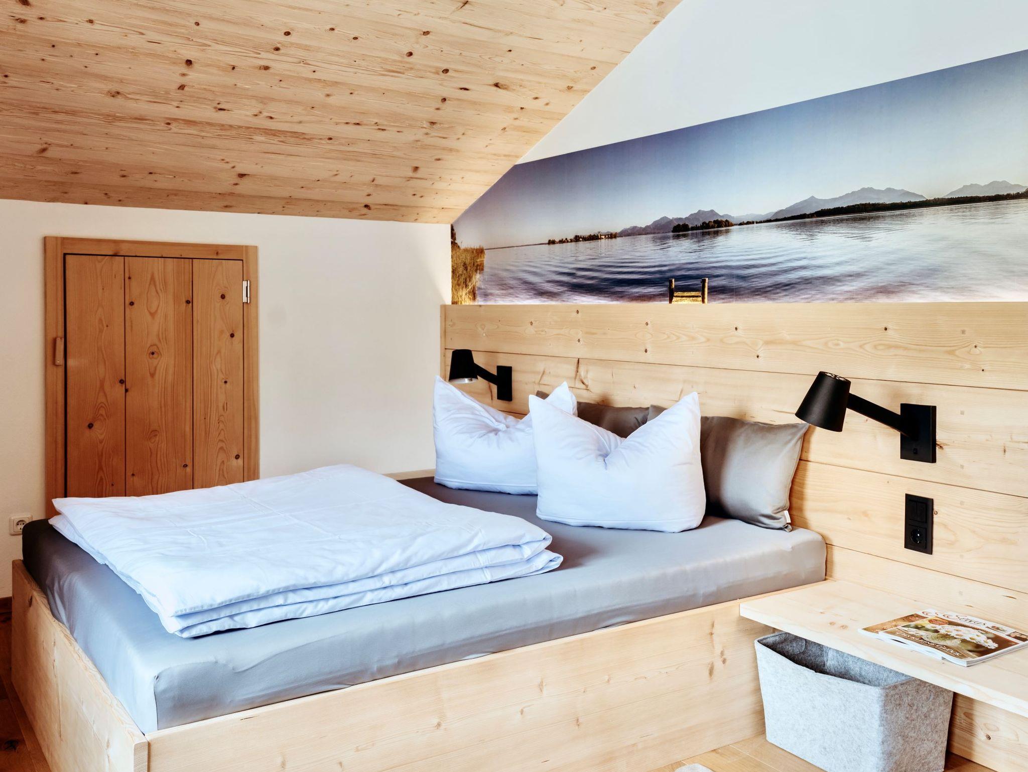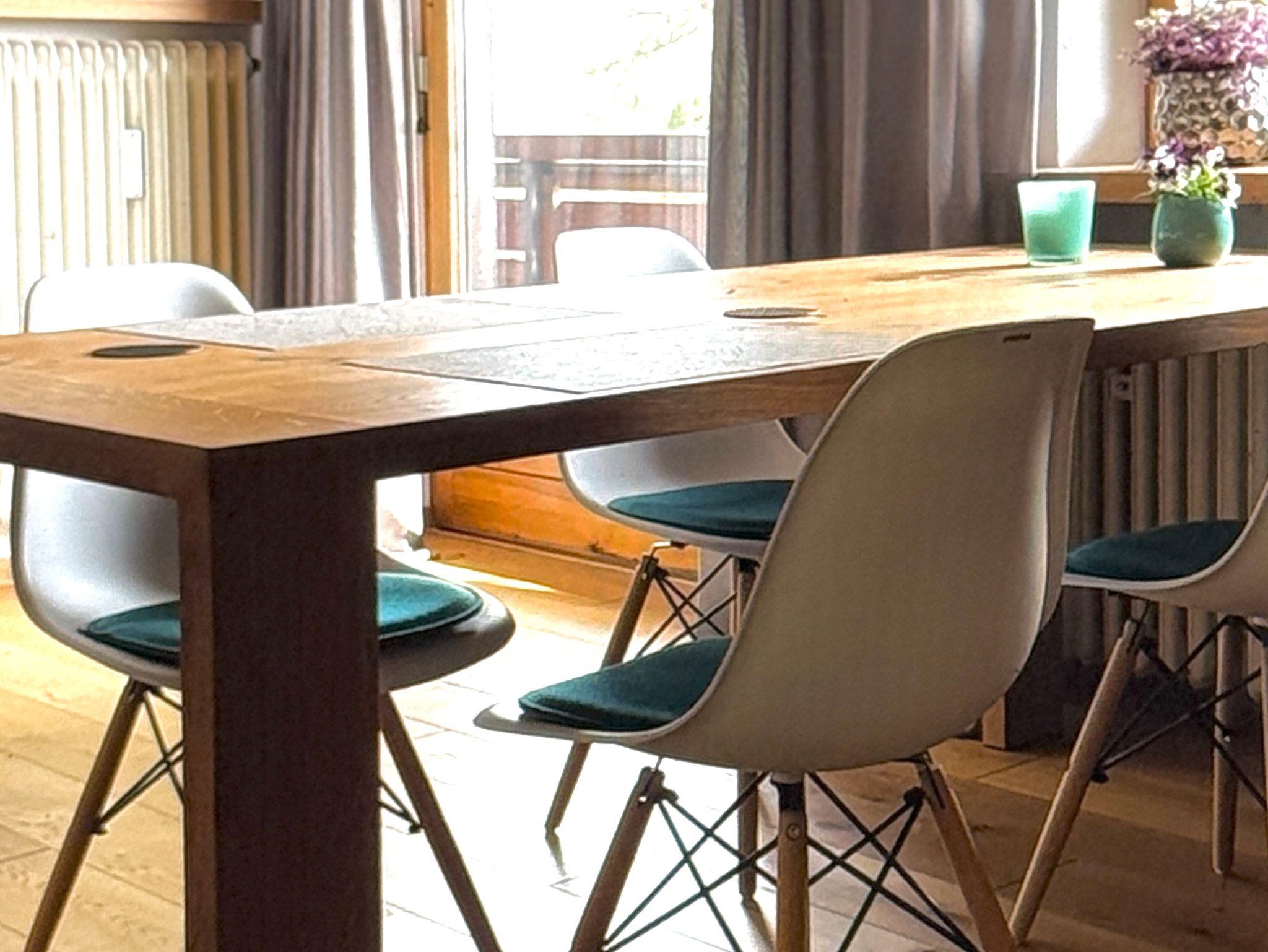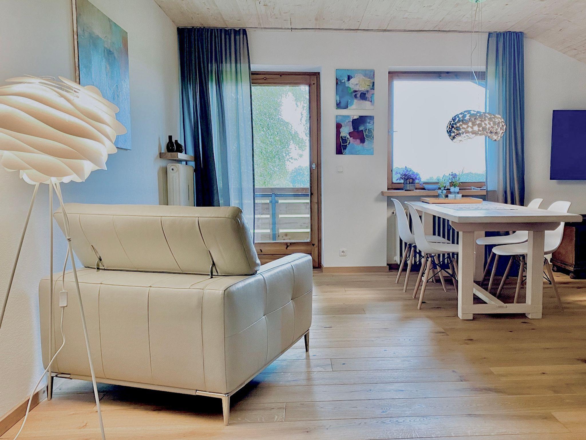Ankommen und wohlfühlen - das verspricht Euch unsere Ferienwohnung, in einem freistehendem Zweifamilienhaus, im ersten Stock. In unserer Ferienwohnung für 2-4 Personen erwartet Euch ein außergewöhnlicher Mix aus Handwerk und unserer Leidenschaft für schöne Dinge. Schreinertüren, Holzböden, designaffine Möbelstücke, eine hochwertige Ausstattung macht unsere Ferienwohnung für Euch zu Eurem ganz persönlichen Rür Wohnbereich verfügt über einen bequemen Ledersessel, ein großes Sofa mit Fußteil, einen Esstisch und einem großen LG 55 Zoll Flachbildschirm mit Wandhalterung. Im Wandel der Jahreszeiten bietet Euch unser großzügiger Südbalkon, zu betreten vom Wohn - sowie auch vom Schlafzimmer, eine traumhafte Aussicht auf den Chiemsee und der Panoramablick auf die Alpen - ist unschlagbar.- Eingangsbereich mit Flur und Garderobe- voll ausgestattete Küche mit einem großen Kühl- + Gefrierschrank, inclusive Kaffee & Tee, Salz, Pfeffer, Zucker, Mehl. Spülmittel & Spültabs werden von uns gestellt.- Bad mit Dusche, Badewanne und Doppelwaschbecken- separates WC incl. Handseife & Kosmetiktücher. Handtücher und Bettwäsche sind ebenfalls im Preis inclusive.- Schlafzimmer - Südseite mit Doppelbett 180 x 200 cm Bitte beachten Sie! Bei einer Buchungen für 1-2 Personen steht nur ein Schlafzimmer zur Verfügung. Buchen Sie für 3-4 Personen, steht Ihnen ein weiteres Schlafzimmer gegen Aufpreis zur Verfügung. Bei Rückfragen kontaktieren Sie uns gerne telefonisch.