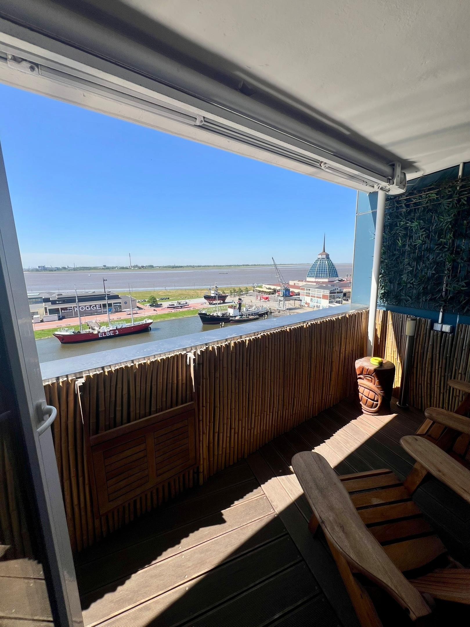 Erleben Sie in Bremerhaven eine stilvolle Ferienwohnung mit spektakulärem Panorama-Weserblick und maritimer Atmosphäre.