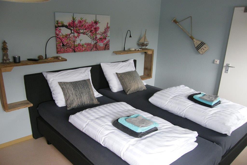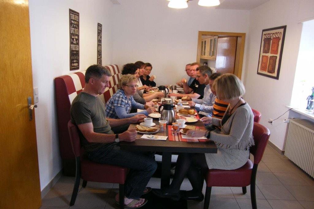 Kommen Sie unseres charmante Ferienhaus besuchen. Großzügig und optimal geeignet für 15 Gäste auf einer Wohnfläche von 350m². Auf Flur ein Wohnzimmer/ Aufenthaltsraum mit Fernseher, Frühstücksraum und eine Küche. WLAN ist im gesamten Ferienhaus vorhanden. 5 Doppelzimmer jedes Zimmer hat ein eigene Dusche und WC. Alle Schlafzimmer haben einen Fernseher. 1 Einzelzimmer, ein kleines Doppelzimmer und ein Wohn/Schlafzimmer mit einem separaten Badezimmer und ein separates WC sind für Sie verfügbar auf Dachgeschoss. In Wohn/Schlafzimmer ist ein Fernseher. Eine kleine Kochnische ist vorhanden um etwas zu erwämen oder zu kochen.