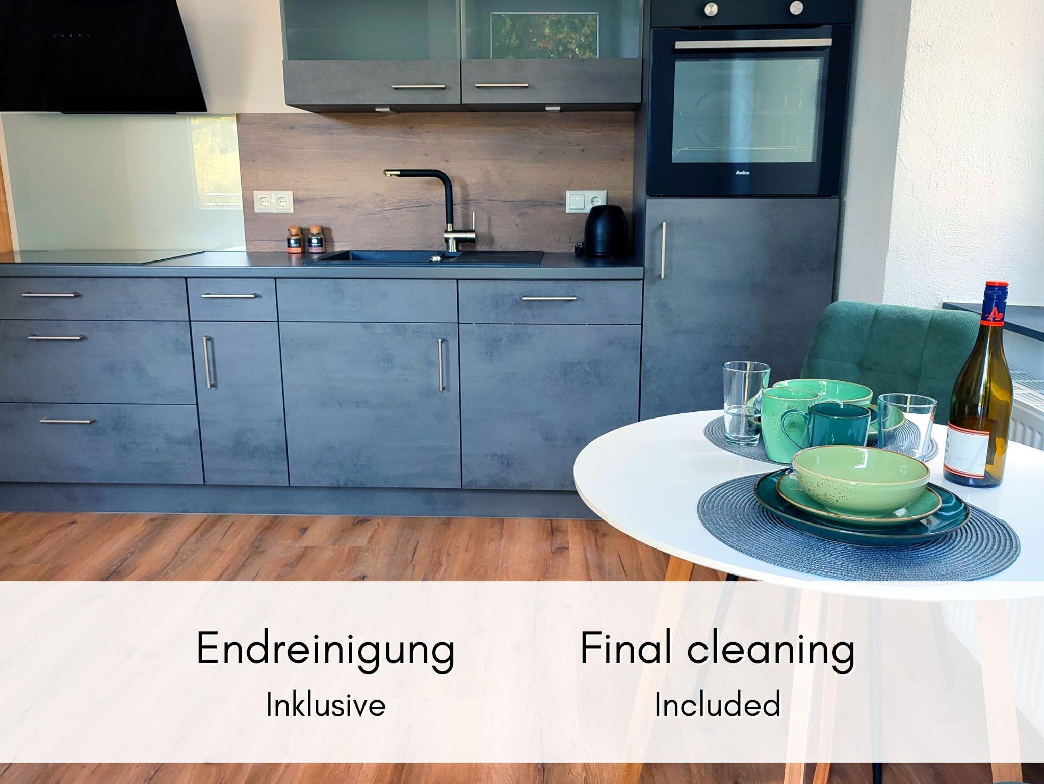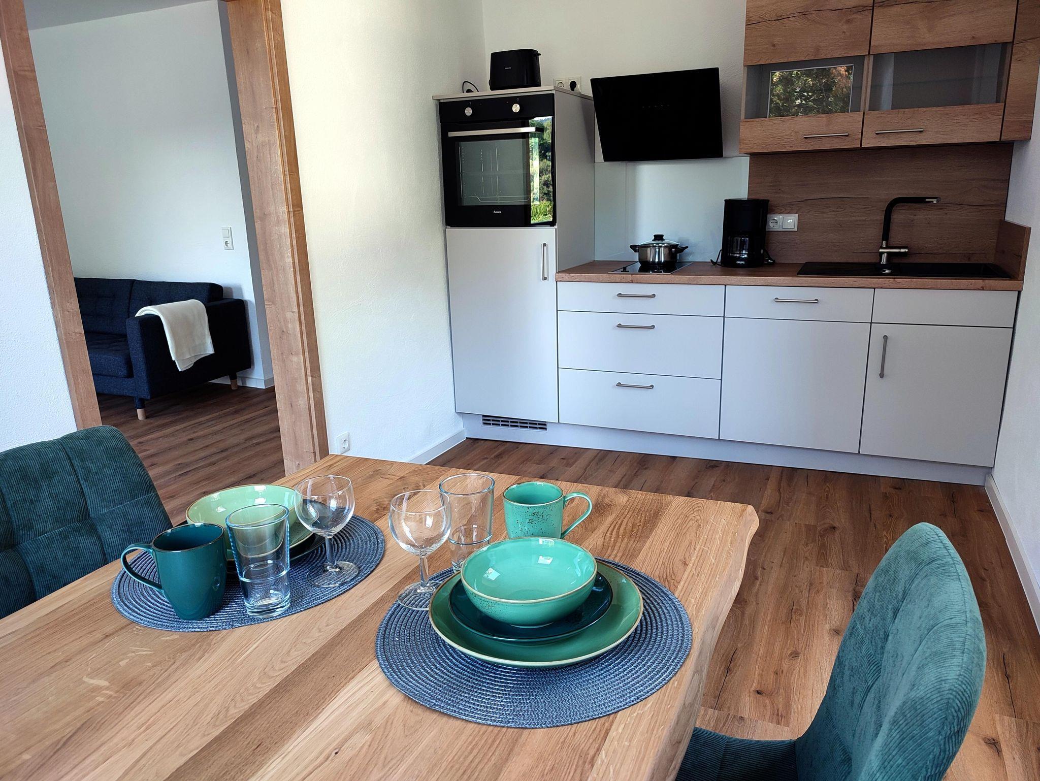 Das Juwel dieses über 200 Jahre alten Anwesens ist zweifelsohne die warme und einladende Atmosphäre, die sich harmonisch mit modernem Komfort und Annehmlichkeiten verbindet. Bei Betreten der Ferienwohnung werden Sie von dem gemütlichen Wohnzimmer empfangen, welches sich nahtlos in eine voll ausgestattete Küche integriert. Hier können Sie kulinarische Köstlichkeiten zubereiten, während Sie die Gesellschaft Ihrer Lieben genießen, die es sich in der gemütlichen Sitzecke bequem gemacht haben.