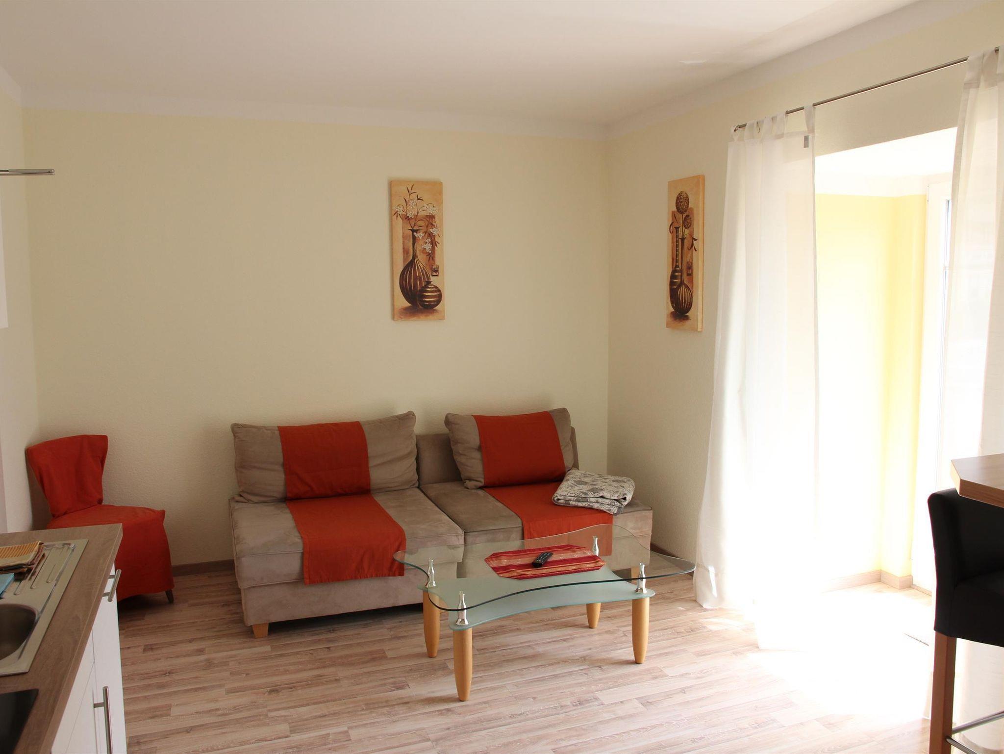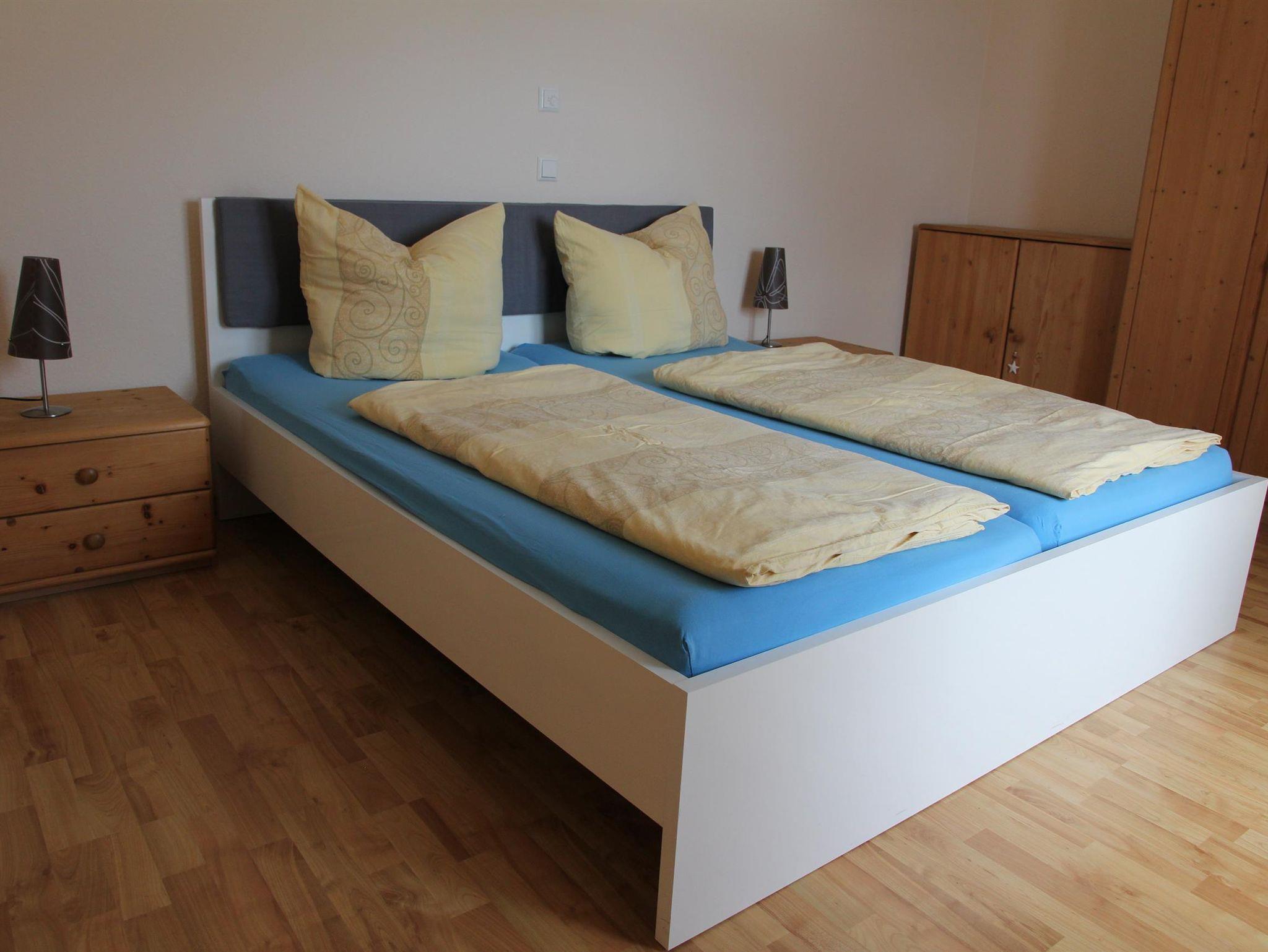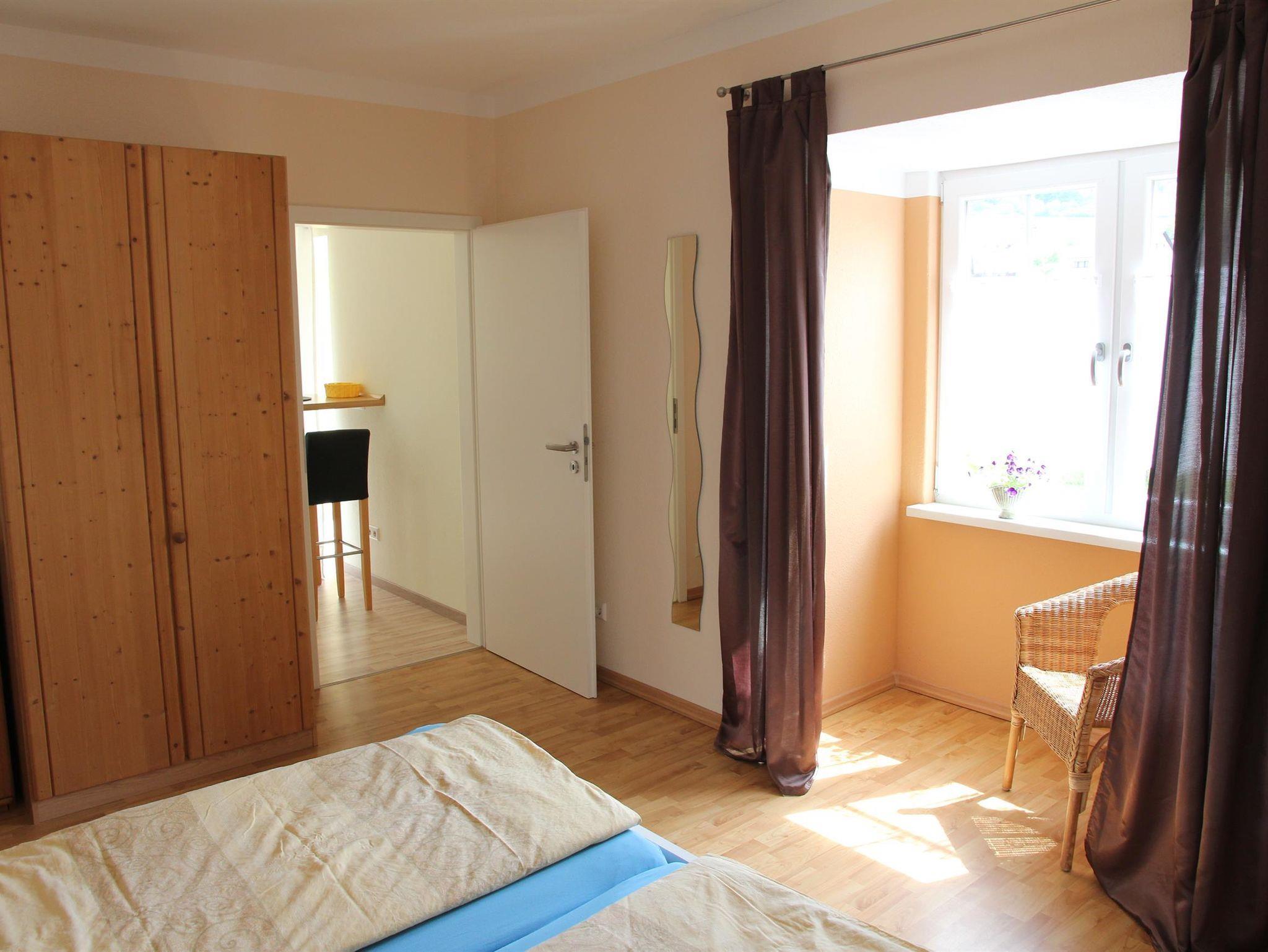 Die Ferienwohnung verfügt über ein seperates Schlafzimmer und einen Balkon mit Gartenblick.