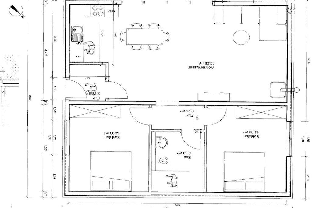 Das Haus umfasst eine Grundfläche von 94 m², einem großen Wohnaufenthaltsraum mit Einbauküche (Kühlschrank, Kochfeld, Spülmaschine), einer gemütlichen Sitzecke mit Fernsehen und Radio sowie einen Kaminofen. Die gesamte Hütte wird geheizt durch eine Gasheizung, und einem Kaminofen, der auch im Winter eine gemütliche Wärme verspricht. Hinzu kommt noch eine Terasse mit 30m/2 Die beiden Schlafzimmer sind mit Doppelbetten ausgestattet, wobei ein Doppelbett zu 2 Einzelbetten umgebaut werden kann. Im Bad finden sie , neben der Toilette, eine konfortabele Regendusche. Internet und Wlan ist vorhanden.