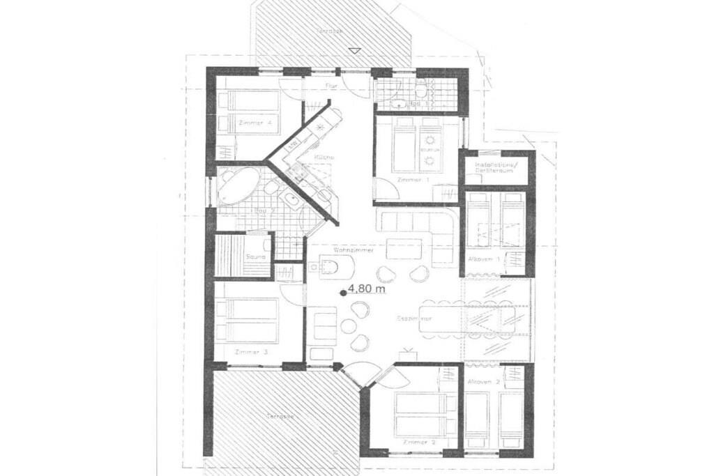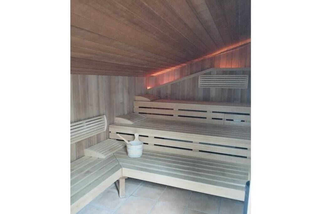 Parterre: (Eingangshalle(, ), Küche(, , , Kochplatte, Wasserkocher, Toaster, Kaffeemaschine, Backofen, Mikrowelle, Spülmaschine, Kühlschrank, Tiefkühlschrank), Wohn/Esszimmer(, , , Bibliothek, TV, Esstisch, Herd, Blu-ray-Player, Stereoanlage, Hochstuhl), Schlafzimmer(, , Doppelbett, Doppelbett, Doppelbett, Doppelbett, Kinderbett), Schlafzimmer(, , Doppelbett, Doppelbett, Doppelbett, Doppelbett, Kinderbett), Schlafzimmer(, , Doppelbett, Doppelbett, Doppelbett, Doppelbett, Kinderbett), Schlafzimmer(, , Doppelbett, Doppelbett, Doppelbett, Doppelbett, Kinderbett), Schlafzimmer(, , Einzelbett, Einzelbett, Einzelbett, Einzelbett), Schlafzimmer(, , Einzelbett, Einzelbett, Einzelbett, Einzelbett), Badezimmer(, , Toilette, Sauna, Hottub, Dusche, Dusche, Waschbecken, Waschmaschine, Heizung, Föhn), Badezimmer(, , Toilette, Dusche, Dusche, Waschbecken, Heizung, Föhn), Ruheraum(Sauna, Hottub)) , , , , Internet, Internet, Erste-Hilfe-Station, Trockner, Waschmaschine, Heizung, Terrasse(, Gartenmöbel, Liegen), Terrasse(, Gartenmöbel, Liegen), Garten(Zentraler Grill, Liegewiese, Grill, Gartenmöbel, Liegen, Gartenhaus), Parkplatz, Bügelbrett, Trockenschrank, Ladestation für Elektroautos, Wäschepaket gegen Gebühr