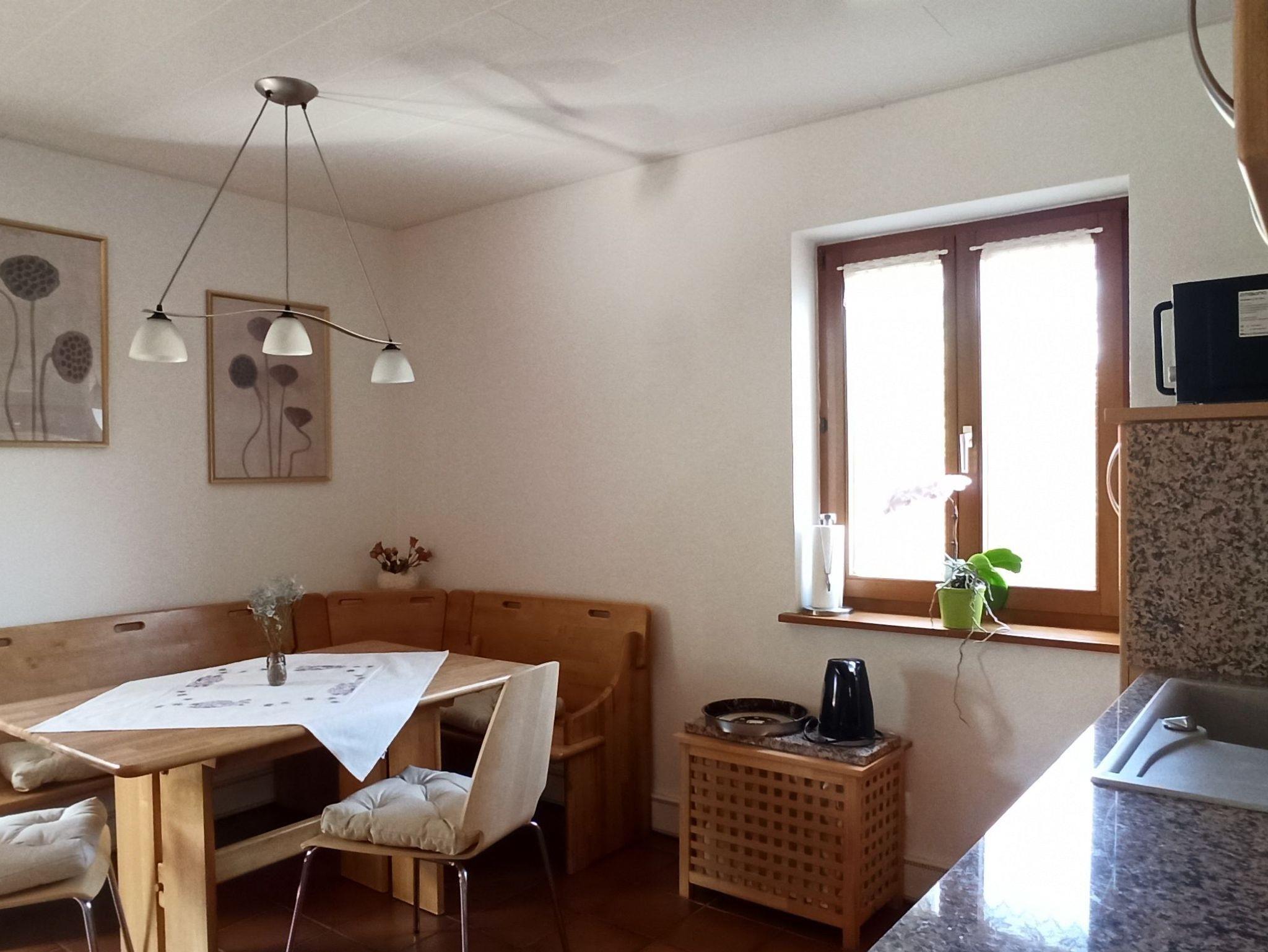 Die gut ausgestattete Küche inklusive Spülmaschine, Backofen, Mikrowelle, Toaster und Kaffeemaschine lädt mit Sitzgruppe und Bank zum gemütlichen Zusammensitzen und Spielen geradezu ein.