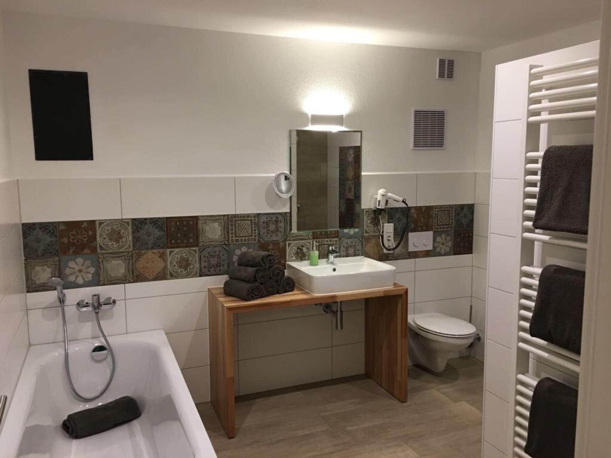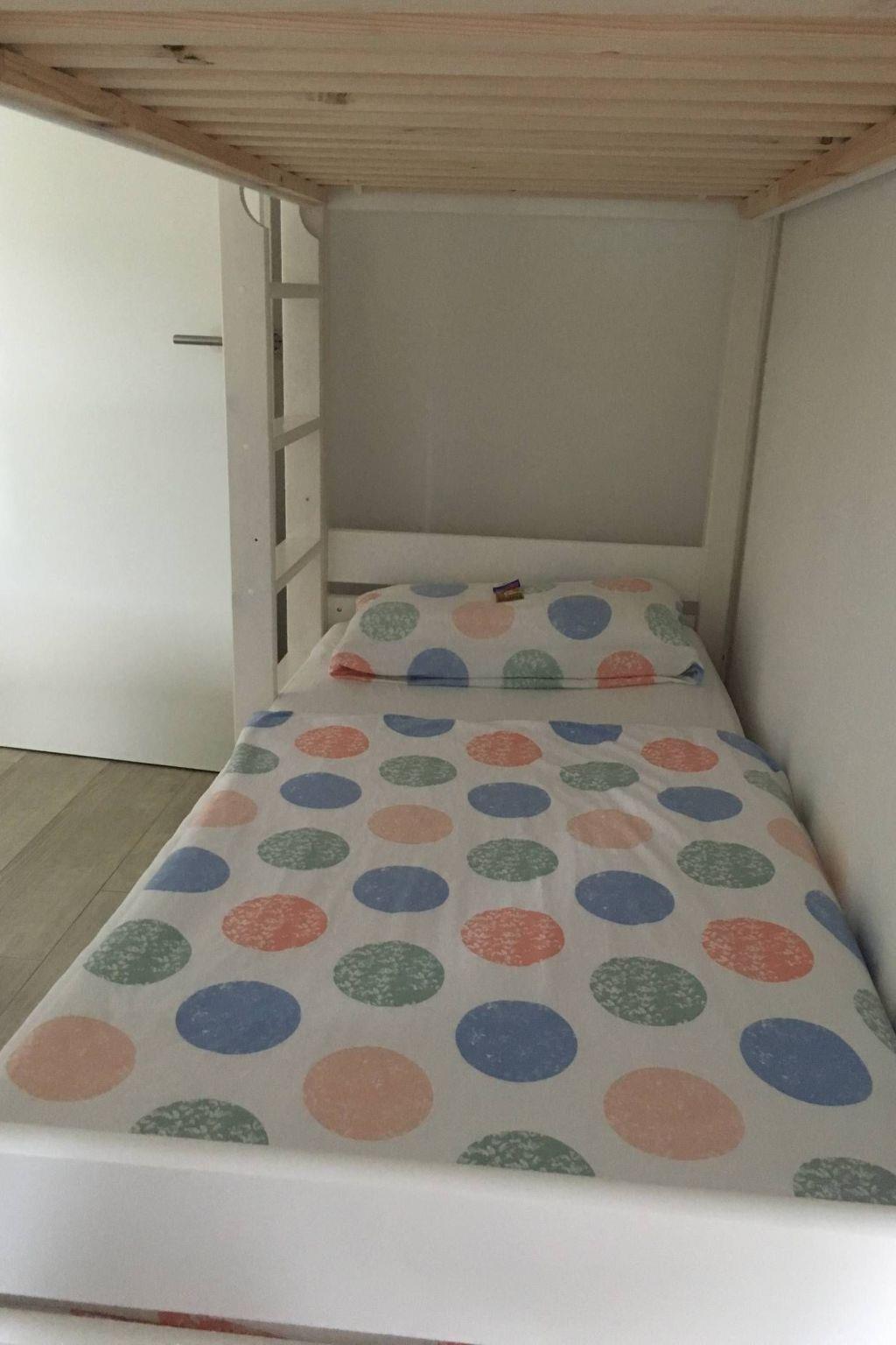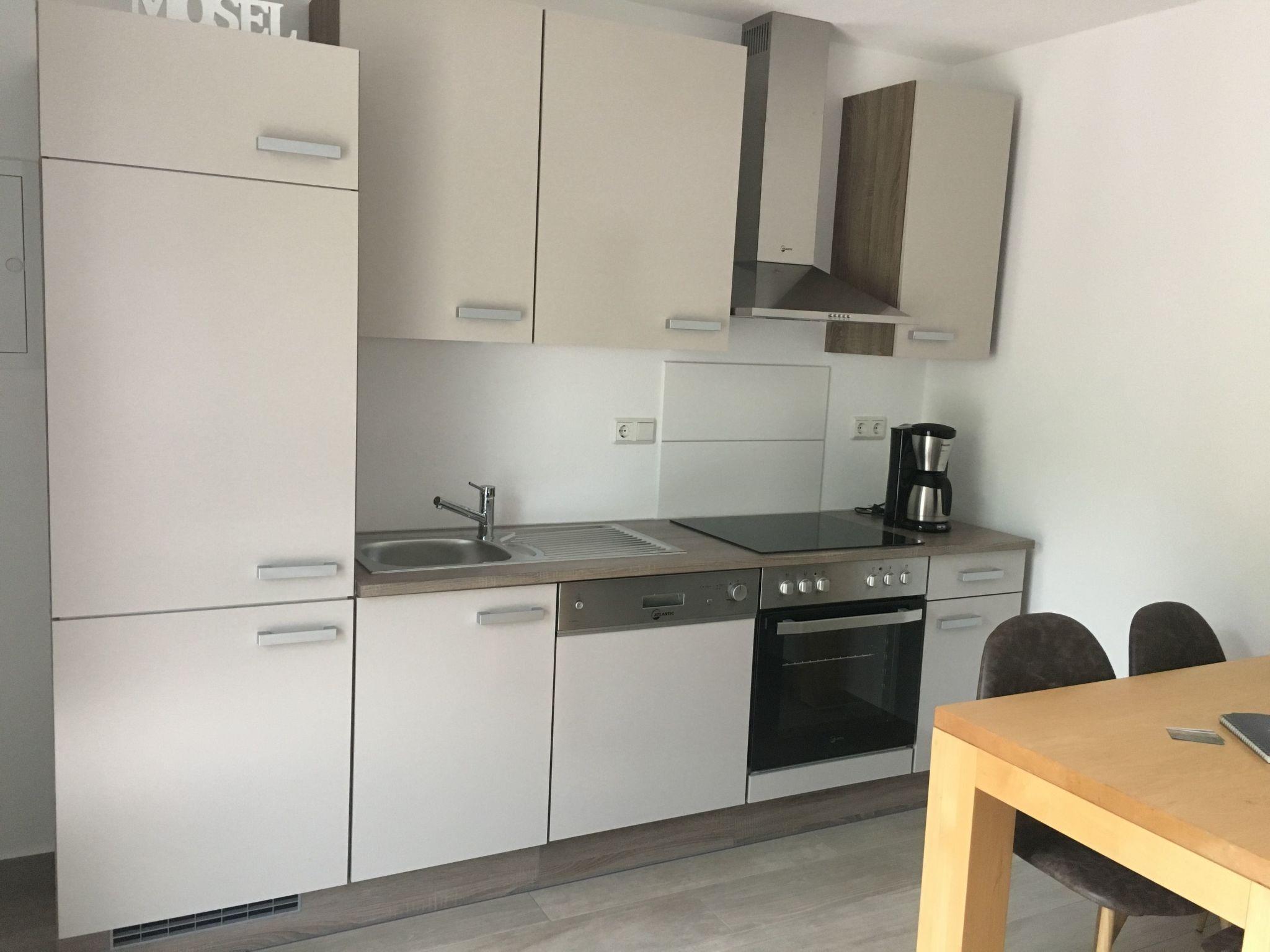 Zu Ihrer Ferienwohnung gelangen Sie direkt von außen über vier Stufen. Der Innenraum unterteilt sich auf 47 m² in ein Schlafzimmer mit Doppelbett, ein Schlafzimmer mit Etagenbett, sowie einen offenen Wohn-, Ess- und Kochbereich. Im ersten Schlafzimmer schlafen Sie in einem 180 cm x 200 cm großen Boxspring-Doppelbett. Ein großer Kleiderschrank bietet Verstauungsmöglichkeiten für Ihre Reisegarderobe. Das zweite Schlafzimmer ist mit einem Etagenbett aus zwei übereinander liegenden Schlafflächen à 90 cm x 200 cm ausgestattet. Im Wohnbereich lädt eine moderne Couch mit Recamiere zum Entspannen nach einer Wanderung ein. Der Flachbildfernseher mit Sat.- und Smart-TV sorgt für Unterhaltung am Abend. Der Essbereich lädt mit vier Stühlen zu einer gemeinsamen Mahlzeit ein. Die Küche ermöglicht Ihnen eine komfortable und umfangreiche Selbstversorgung anhand eines Cerankochfeldes mit Backofen, einer Geschirrspülmaschine, einer Mikrowelle, sowie den üblichen Kleinelektrogeräten wie Wasserkocher, Eierkocher, Toaster und Kaffeemaschine. Ein Hochstuhl, Reinigungsmittel, Küchenutensilien, Töpfe, Pfannen, Geschirr und Besteck lassen keine Wünsche offen. Eine Bügelstation mit Bügeleisen, sowie ein Babypaket mit Babyreisebett, Babykostwärmer und Babyphone ist ebenfalls vorhanden. Das Badezimmer ist als Vollbad mit Badewanne, ebenerdiger Dusche, Waschtisch und Badezimmerfenster konzipiert. Die kostenlose Internetverbindung per WLAN rundet die Ausstattung ab.