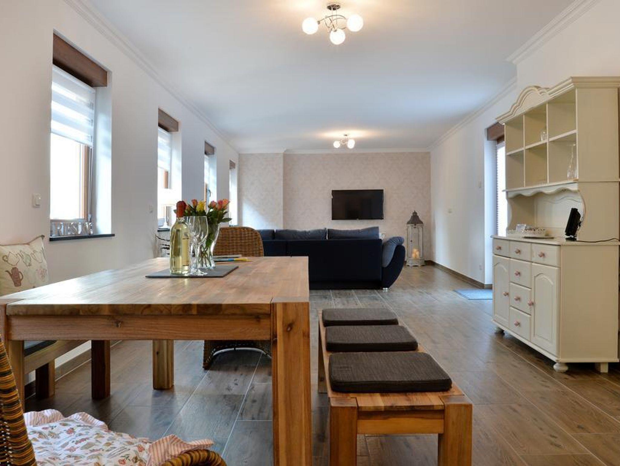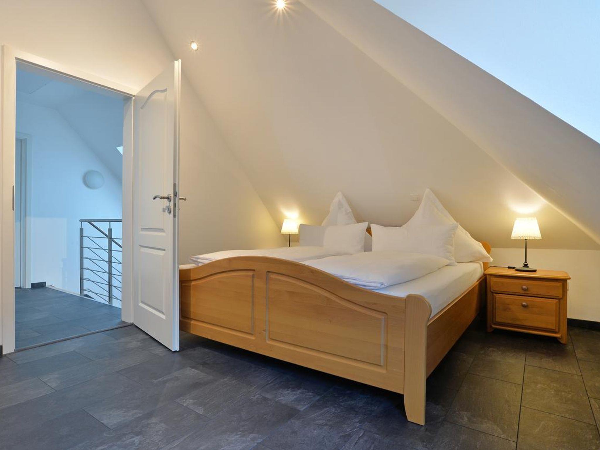 Die Ferienwohnung Poststraße erstreckt sich auf 140qm über das Ober- und Dachgeschoss des Haues und ist ausschließlich über Treppen zu erreichen. Es gibt einen großzügigen Wohn- und Essbereich mit einer voll ausgestatteten Küche und einem Flachbildfernseher. Auf der gleichen Etage befindet sich das Einzelzimmer, ein Tageslichtbad mit Dusche und ein Abstellraum mit Waschmaschine. Im Dachgeschoss befinden sich die beiden Doppelzimmer, eines davon mit zusätzlichem Flachbildfernseher, sowie das große Tageslichtbad mit Dusche und Badewanne. Dieses Bad ist nur durch eines der Schlafzimmer zu erreichen. Bitte beachten Sie dies bei Ihrer Planung. Die Wohnung verfügt über einen Balkon und eine gemütliche Sitzecke mit Grillmöglichkeit im Garten.