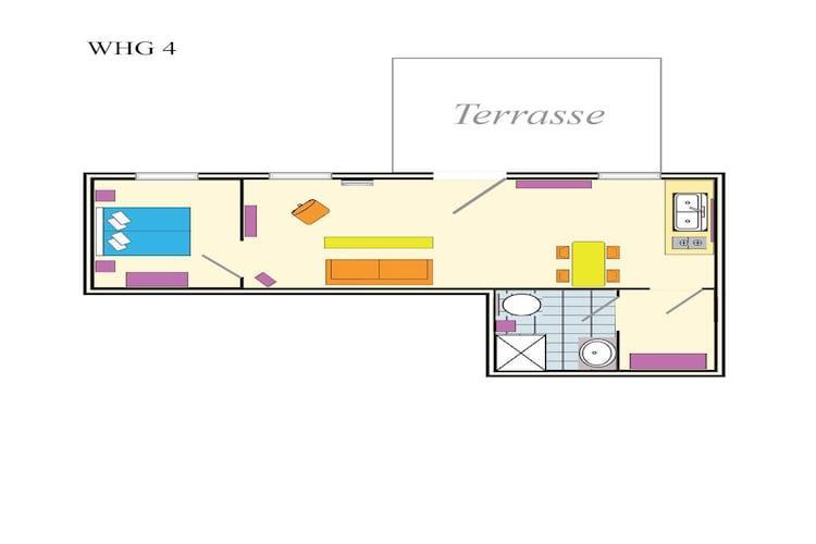 Parterre: (offene Küche(Kochplatte(2 Kochplatten, Ceranfeld), Wasserkocher, Toaster, Kaffeemaschine, Backofen, Mikrowelle, Kühl-/Gefrierkombination), Wohn/Esszimmer(Doppelschlafcouch, TV(Flatscreen, Satellit), Esstisch), Schlafzimmer(Doppelbett(180 x 200 cm)), Badezimmer(Dusche, Waschbecken, Toilette)) Heizung(Gas), Terrasse, Gartenmöbel, Parkplatz, Handtücher/Bettwäsche (extra Gebühr)