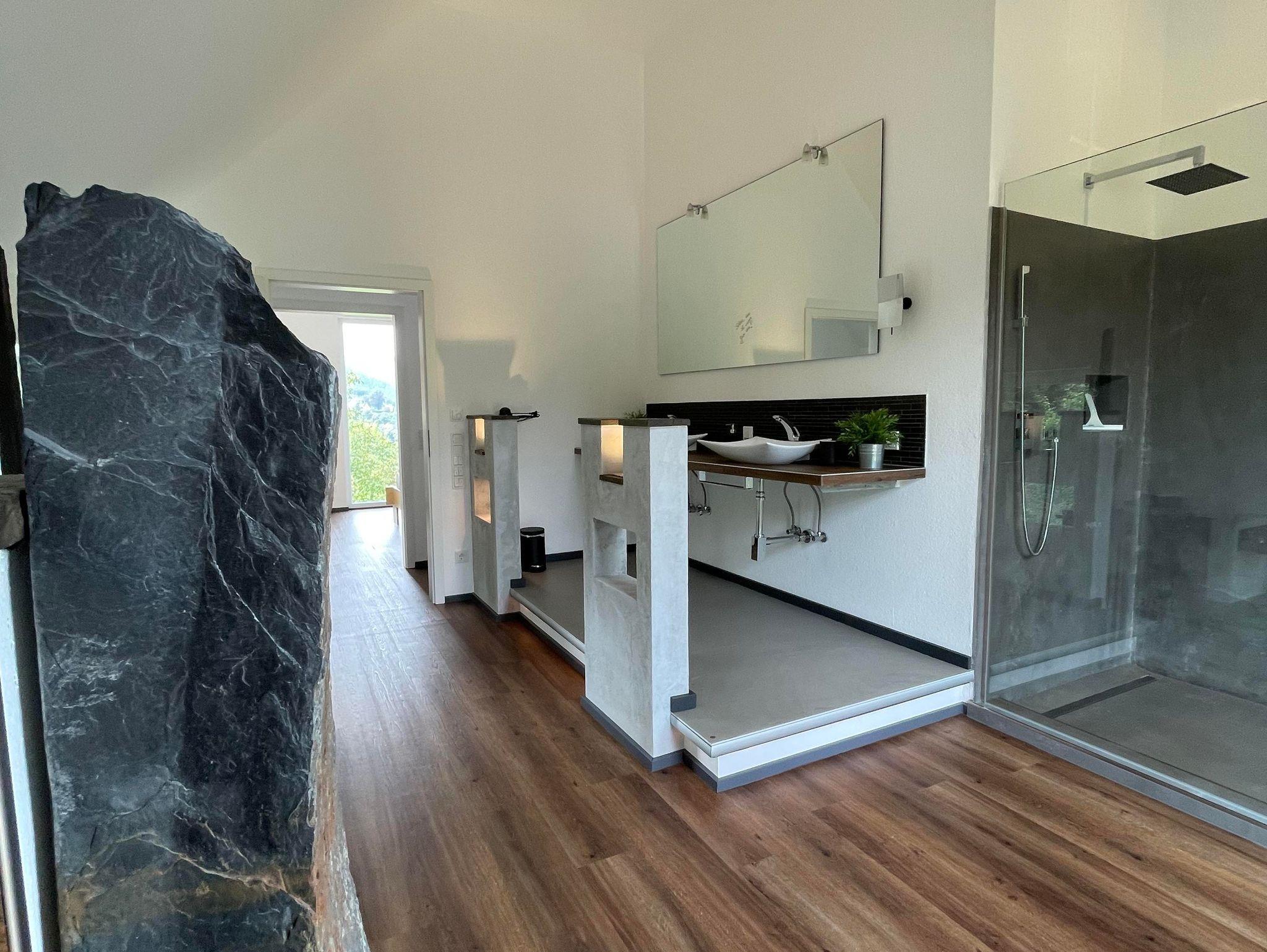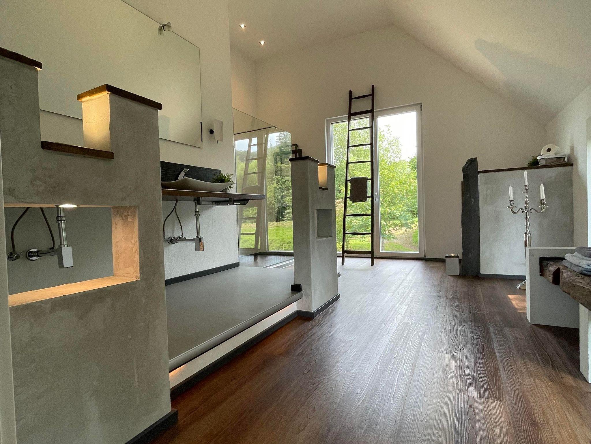 ...ein neues exclusives Ferienhaus mit 130 qm Wohnfläche, das sich durch die moderne Architektur, an die Natur anpasst. Holz und Schiefer sind der gemeinsame Nenner, der sich perfekt und harmonisch mit der umgebenen Landschaft in Einklang bringt.