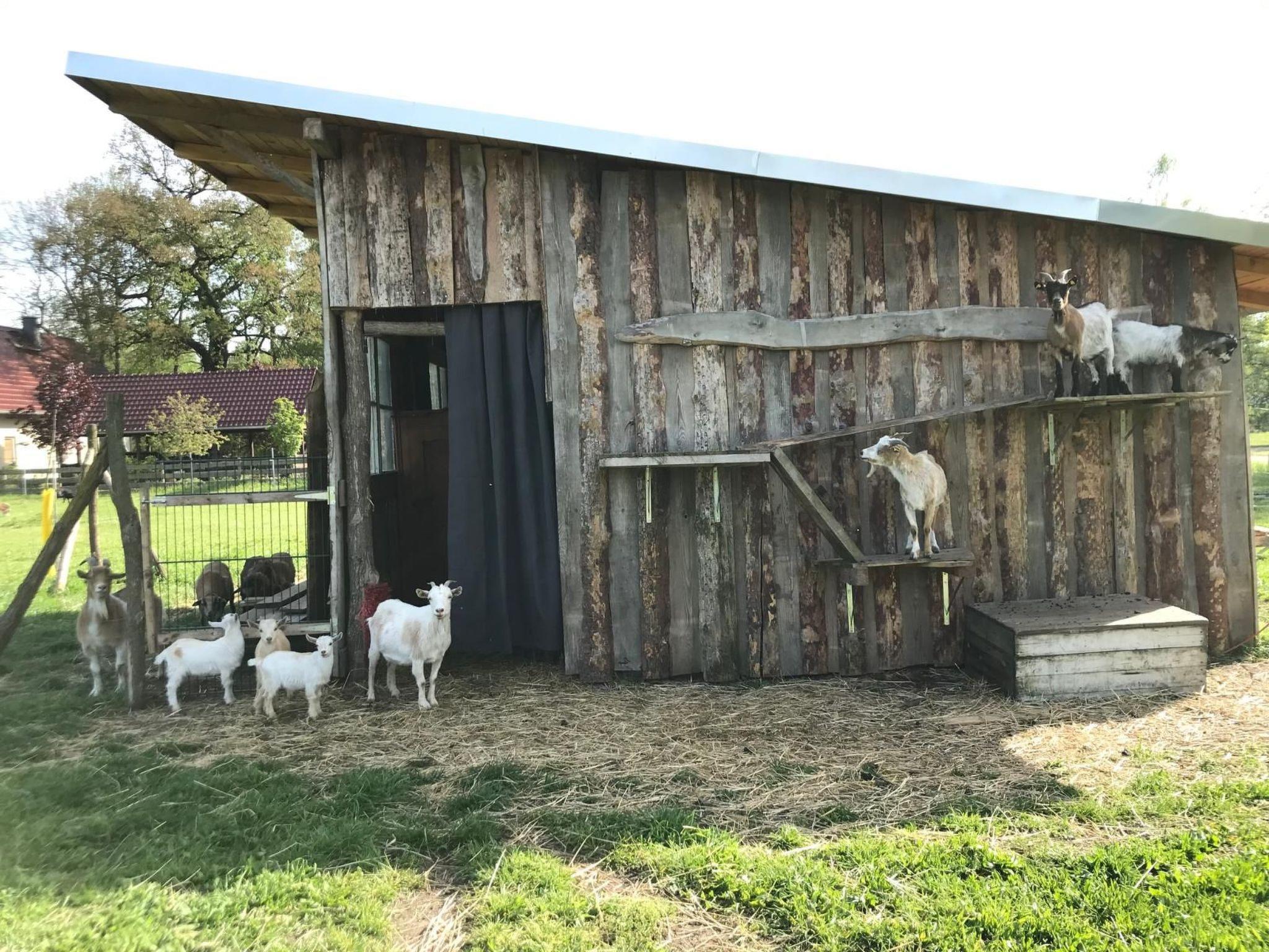 Mit einem Blick auf unsere Ziegen und Schafe oder auf den Sonnenliegen direkt an der großen Wildbahn.