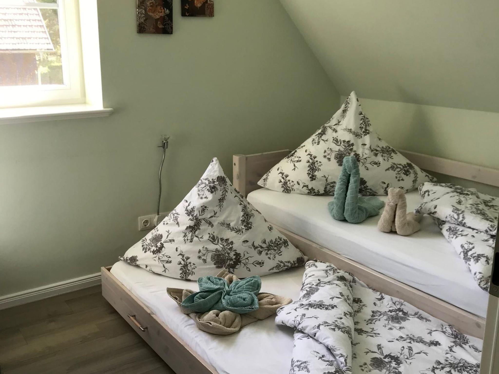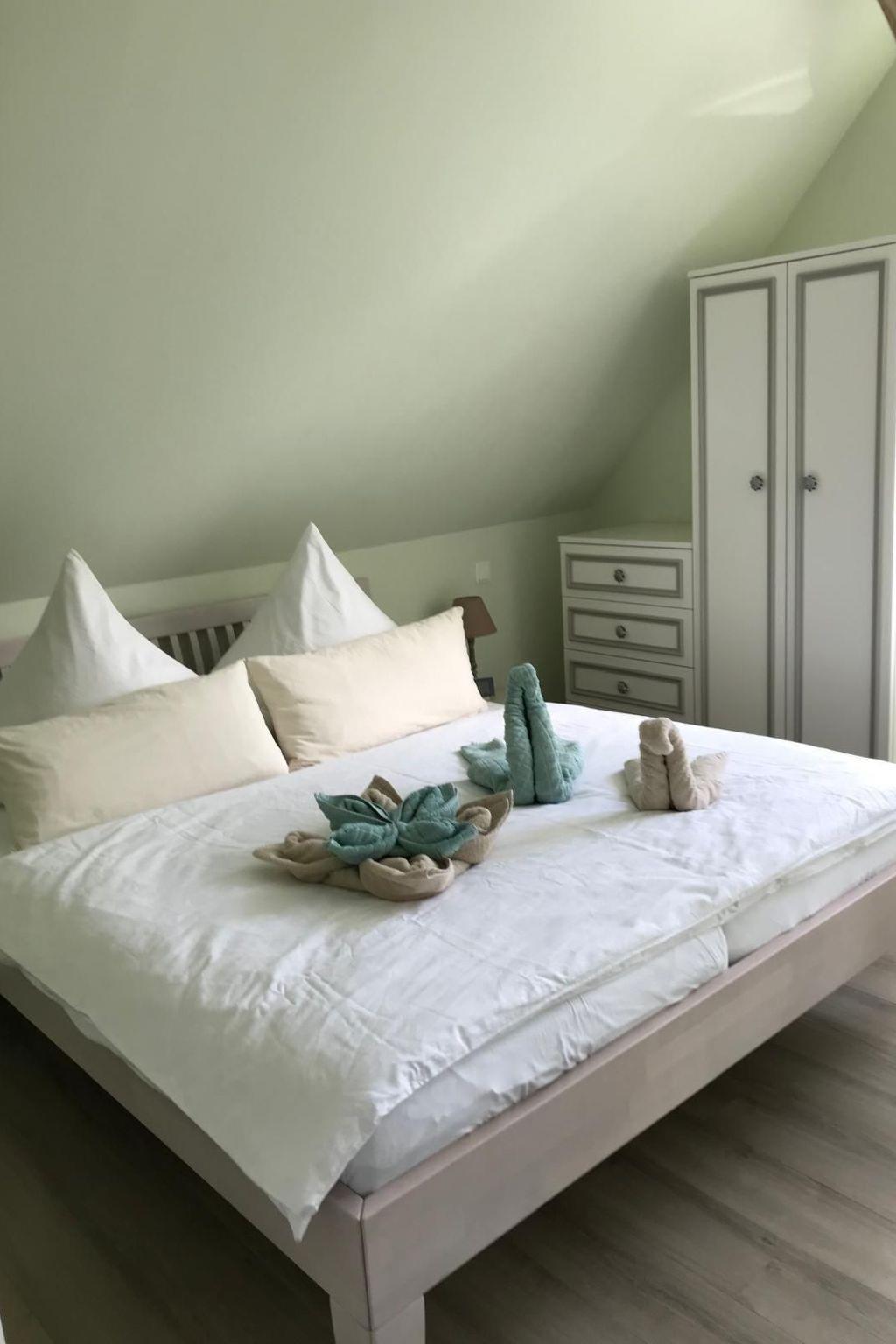 Bis zu 4 Personen finden in der jeweiligen Ferienwohnung mit geräumigen Wohnzimmer, Bad mit Dusche, 1 großes Schlafzimmer, ein kleineres Schlafzimmer und komplett eingerichteter Küche ihren Platz. Die Wohnungen befinden sich im ersten Obergeschoss in einer umgebauten Bohlenblockhütte, auf privatem Grundstück.