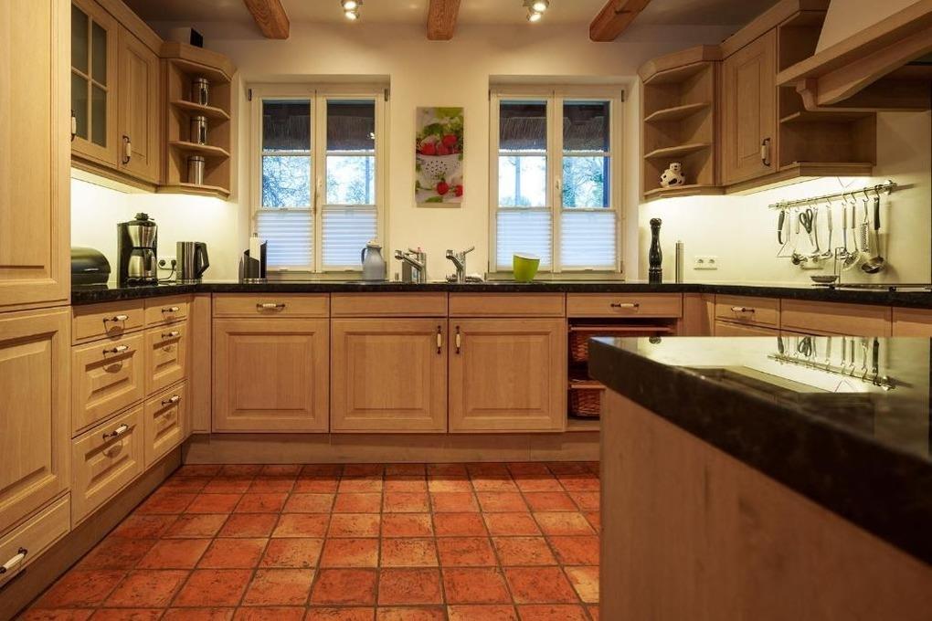 Das reetgedeckte Holzhaus mit seiner gehobenen Ausstattung und der 200 qm Wohnfläche ein besonderes Urlaubserlebnis. Ein Kamin im Wohnzimmerbereich vorhanden. Brennholz steht zur Verfügung. Die große Holzterrasse und ein fester Grillplatz runden das Angebot ab.