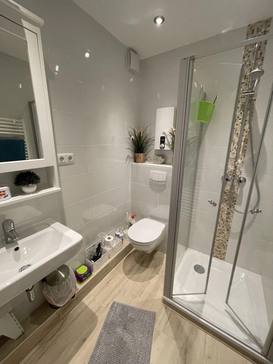 Moderne Einbauküche mit moderner Ausstattung ( Cerankochfeld, Backofen/Mikrowelle, Kühlschrank mit Gefrierfach Kaffeemaschine, Wasserkocher, Toaster)