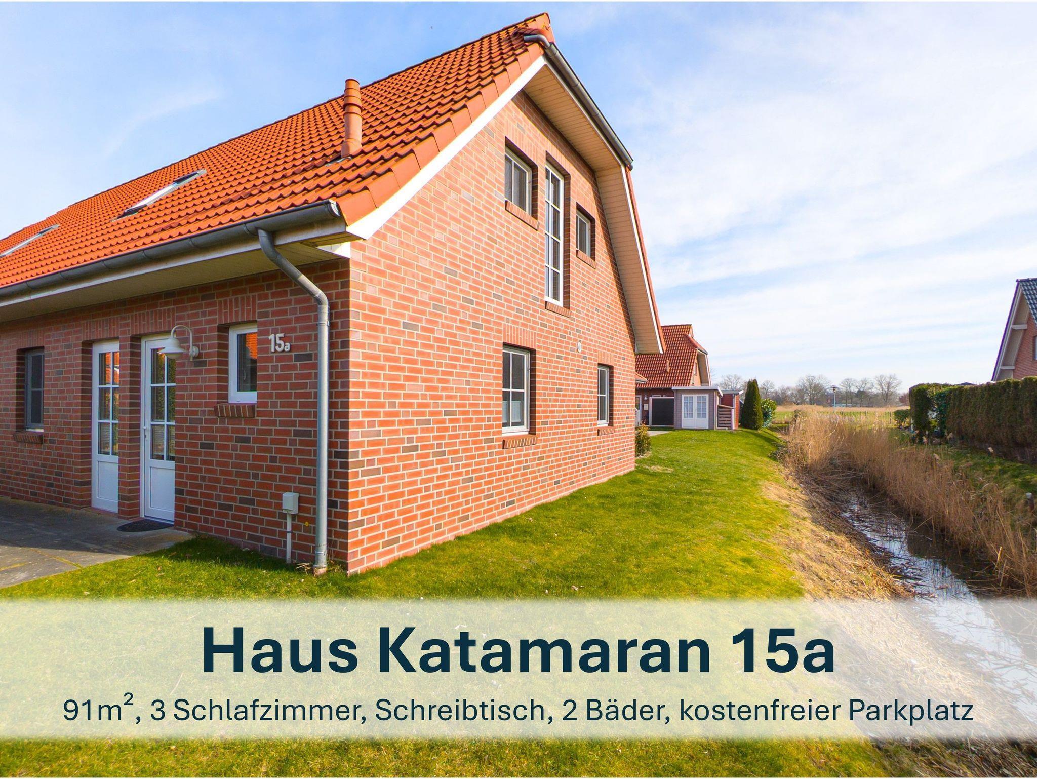 Charmantes Ferienhaus Katamaran in Burhave mit privater Terrasse und vielfältigen Freizeitmöglichkeiten für Familien.