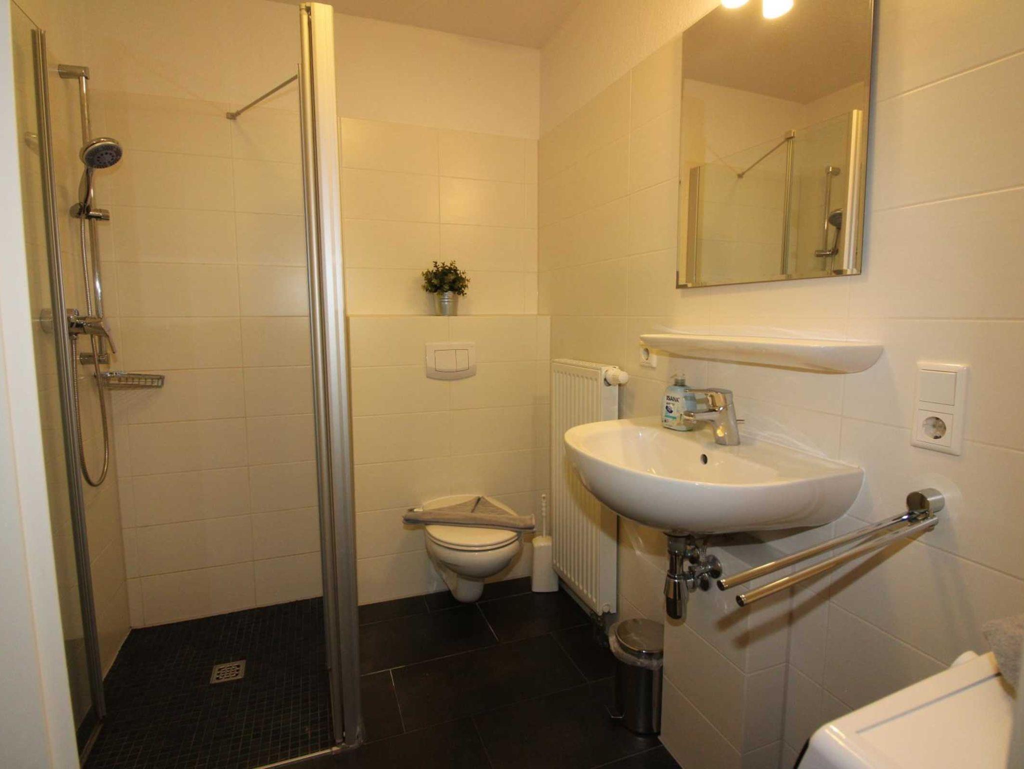 Bad/WC mit begehbarer Dusche und Waschmaschine