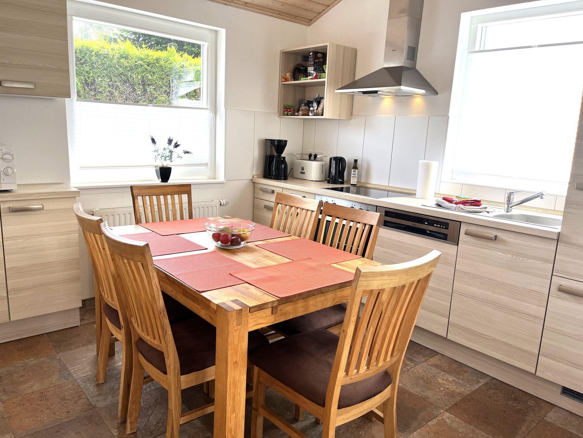 Die Einbauküche mit Geschirrspüler, Herd, Ofen und Mikrowelle ist mit allem ausgestattet was Sie brauchen im Urlaub. Rundherum ein süßes und praktisches Ferienhaus, in dem 6 Personen entspannte Urlaubstage genießen können.