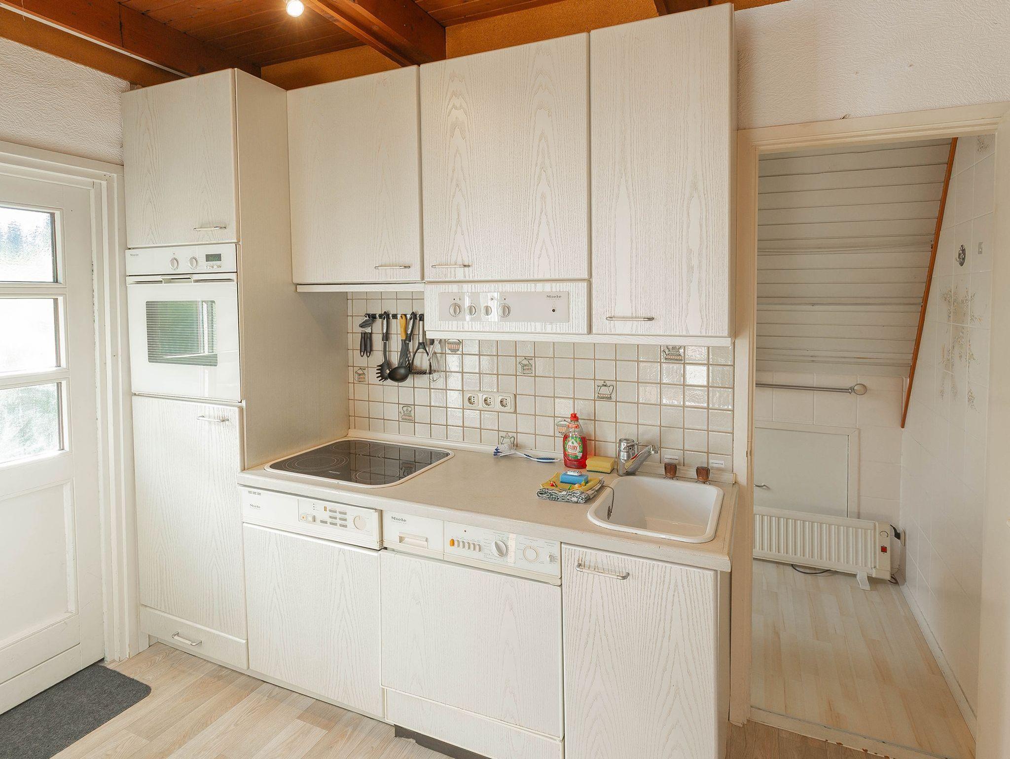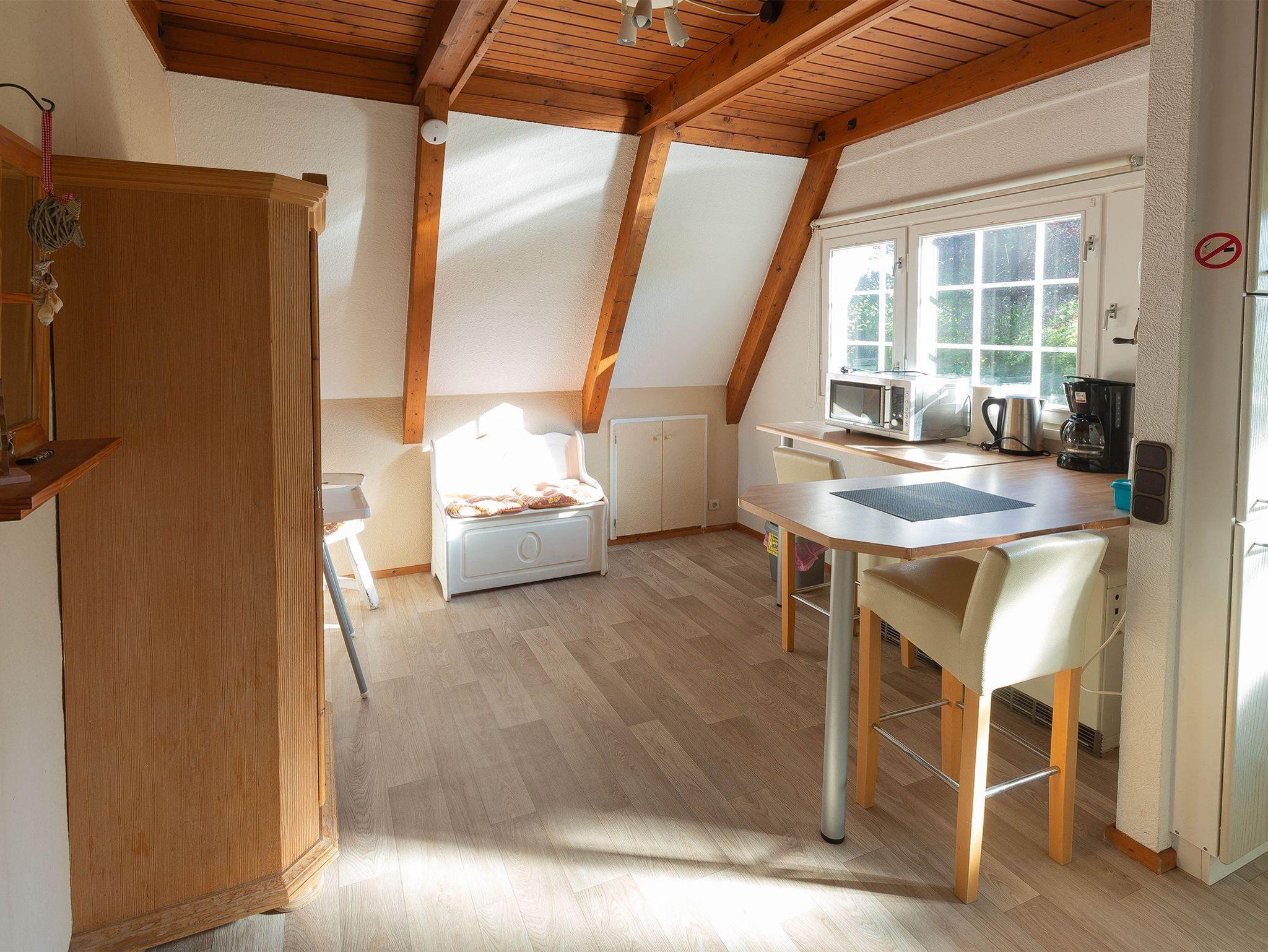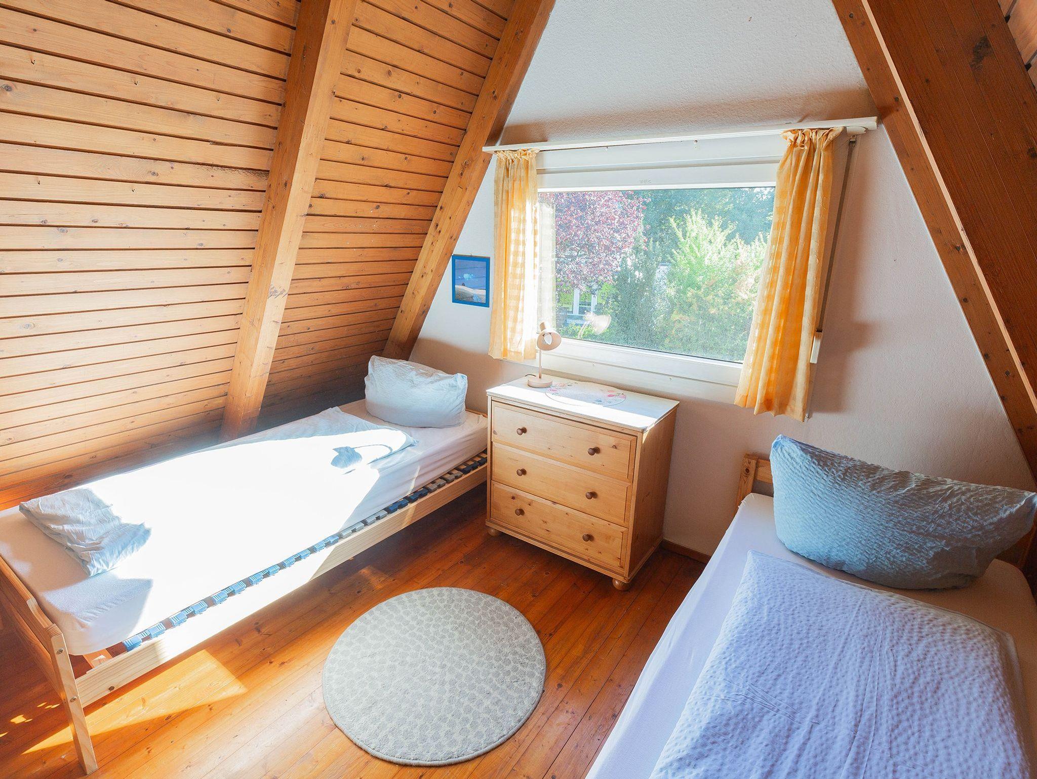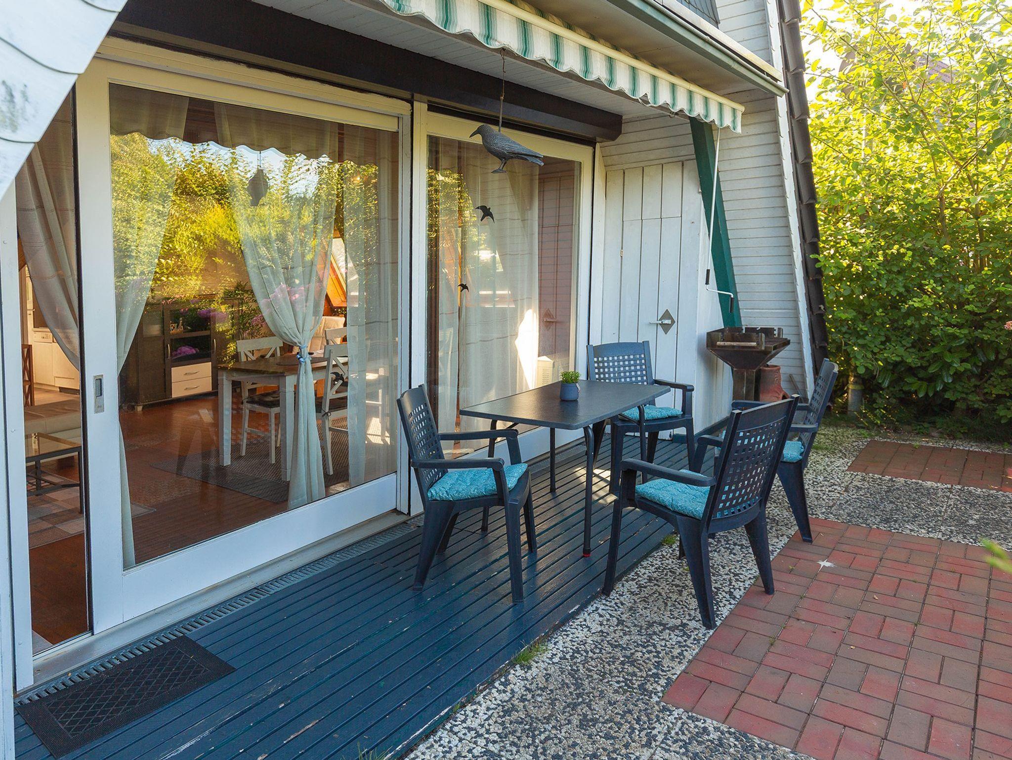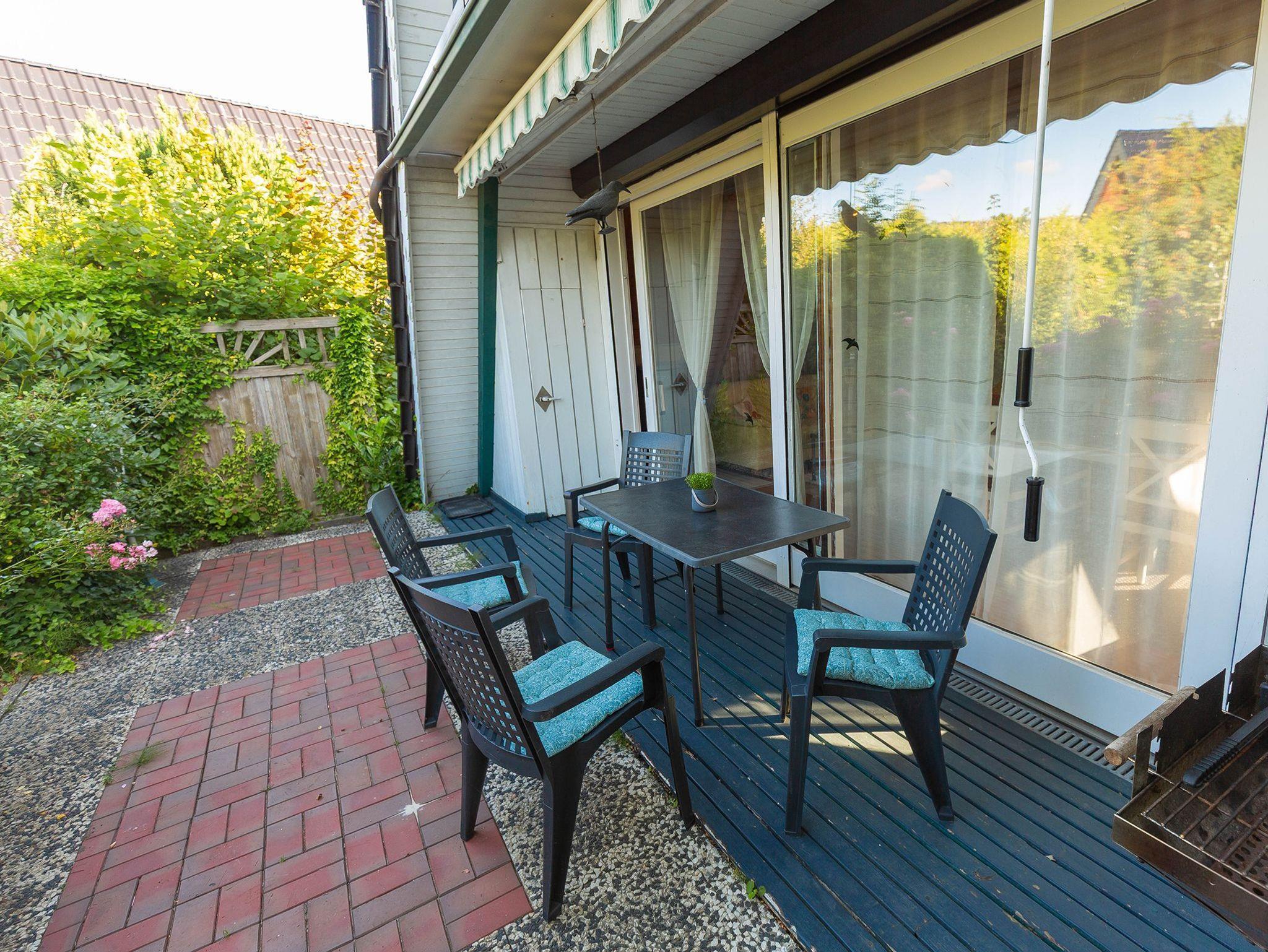 Der gemütliche Wohn-, Koch- und Essbereich ist behaglich eingerichtet. Wir bieten eine DSL-50-Leitung. Eine gut ausgestattete Küchenzeile mit Bar-Essbereich erwartet Sie - alles da für´s gemütliche Frühstück oder das entspannte Kochen. Im EG liegt auch das helle Duschbad. Über eine geschlossene Holztreppe gelangen Sie zu den beiden Schlafzimmern mit Einzelbetten - in einem Schlafraum zusammengestellt zum Doppelbett - beide Räume haben reichlich Platz für Kleidung. Entspannen Sie auf der möblierten weitläufigen Terrasse mit viel Grünbewuchs.