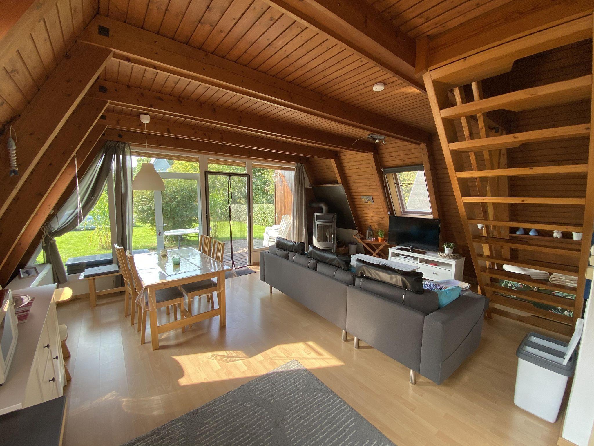 Das Ferienhaus hat einen großen Garten mit Terrasse auf einem ruhig gelegenen Eckgrundstück. Zum Ferienhaus gehört eine vollausgestattete Küche mit Essecke und eine Wohnecke mit TV und Kamin. Die drei Schlafzimmer sind im Haus verteilt, 1 Schlafzimmer mit Doppelbett und ein Schlafzimmer mit 2 Einzelbetten im Obergeschoß und ein Schlafzimmer mit Schlafsofa im Erdgeschoss. Auch ein neu saniertes Bad mit Dusche und WC befindet sich im Erdgeschoss. Die Terrasse mit einer angrenzenden Liegewiese, Gartengrill und gemütlichen Sitzmöbeln laden zu sehr schönen Urlaubstagen ein. Ein PKW-Parkplatz befindet sich am Haus.