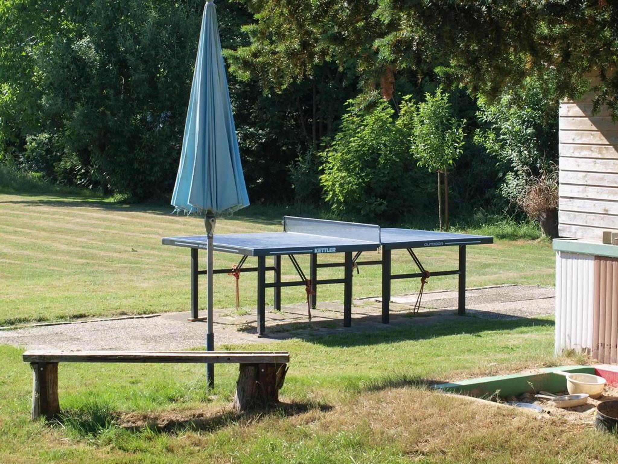 Fahrräder mit Kindersitz, Fahrradkarte, Grill, z.T. auch Kinderräder, Schaukel, Tischtennis, Sandkiste und Gästeterrasse, und einen großen Rasen.