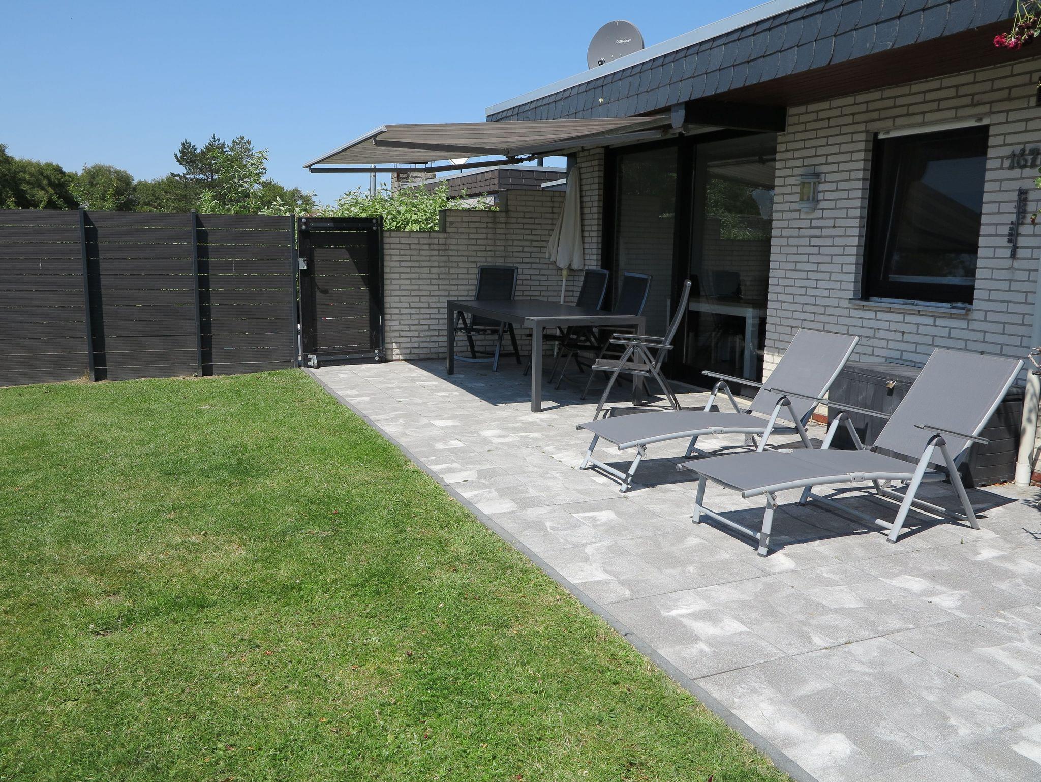 Neben einer voll ausgestatteten Küche erwartet Sie ein großer und offener Wohnbereich mit Internet und stufenlosem Übergang zur Süd-Terrasse sowie ein Stellplatz direkt am Haus. Eine Fußbodenheizung erwärmt das gesamte, durchgefließte Haus. Zum Garten hin gelegen ist eine ca. 30 qm² große Terrasse mit nagelneuen Sitz- und Liegemöbeln, ein Grill sowie ein Sonnenschirm im windgeschützten Außenbereich vorhanden. Außerdem gibt es eine neue, ausfahrbare Markise und einen Strandkorb. Das gesamte Ferienhaus ist neu ausgestattet, modern eingerichtet und wenn doch einmal etwas fehlen sollte, wird Abhilfe geleistet.
