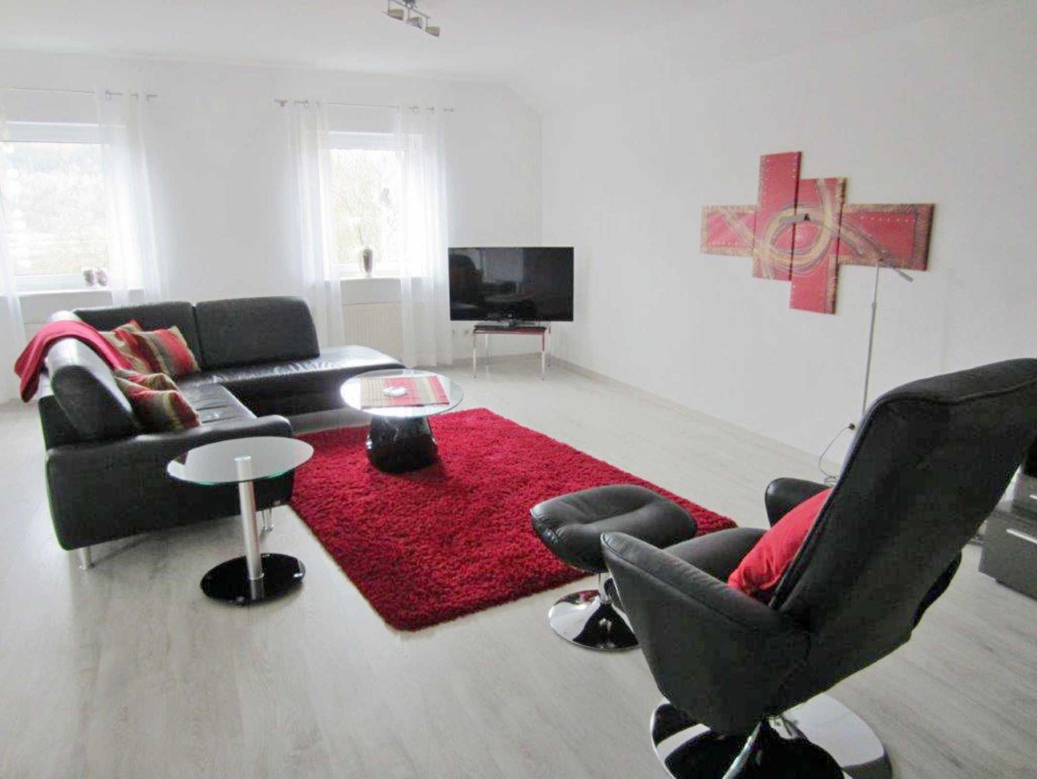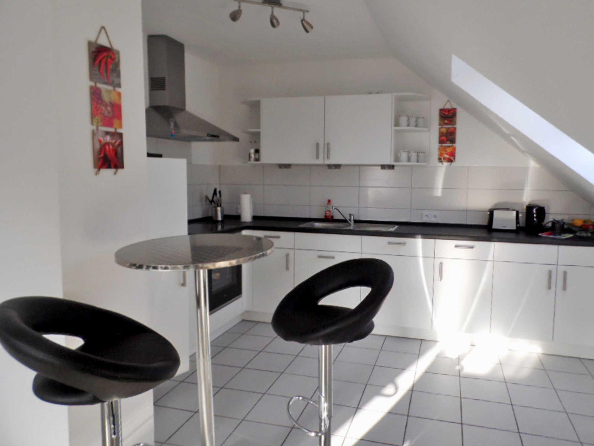 Unsere modern und liebevoll eingerichtet Nichtraucher-Ferienwohnung (92 qm, 1 großes Wohnesszimmer mit offener Küche, 2 Schlafzimmer, Dusche/Badewanne/WC, kleiner Balkon, WLAN-Internet, max. 4 Erwachsene und ein Kleinkind bis 3 J.) befindet sich in der oberen Etage eines Einfamilienhauses, das in einer ruhigen Nebenstraße mit wenig Fahrzeugverkehr liegt.